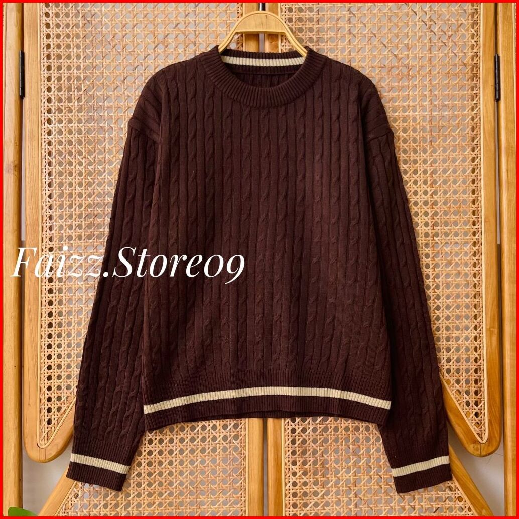 Sairen Blouse Knit - Atasan Sweater Rajut Wanit Motif Cable Kerah Bulat Lengan Panjang Korean Style