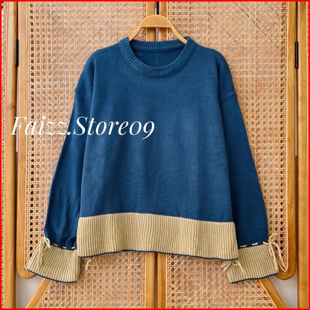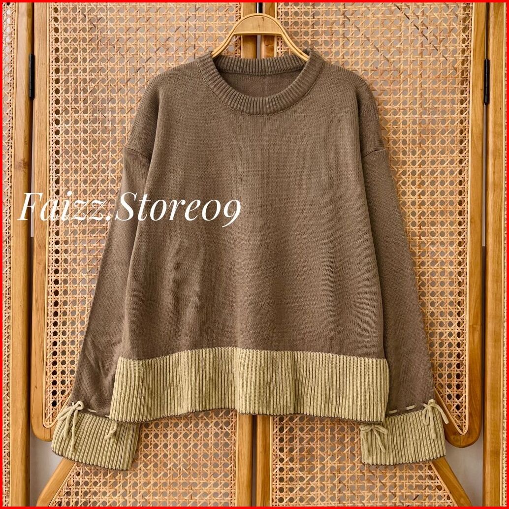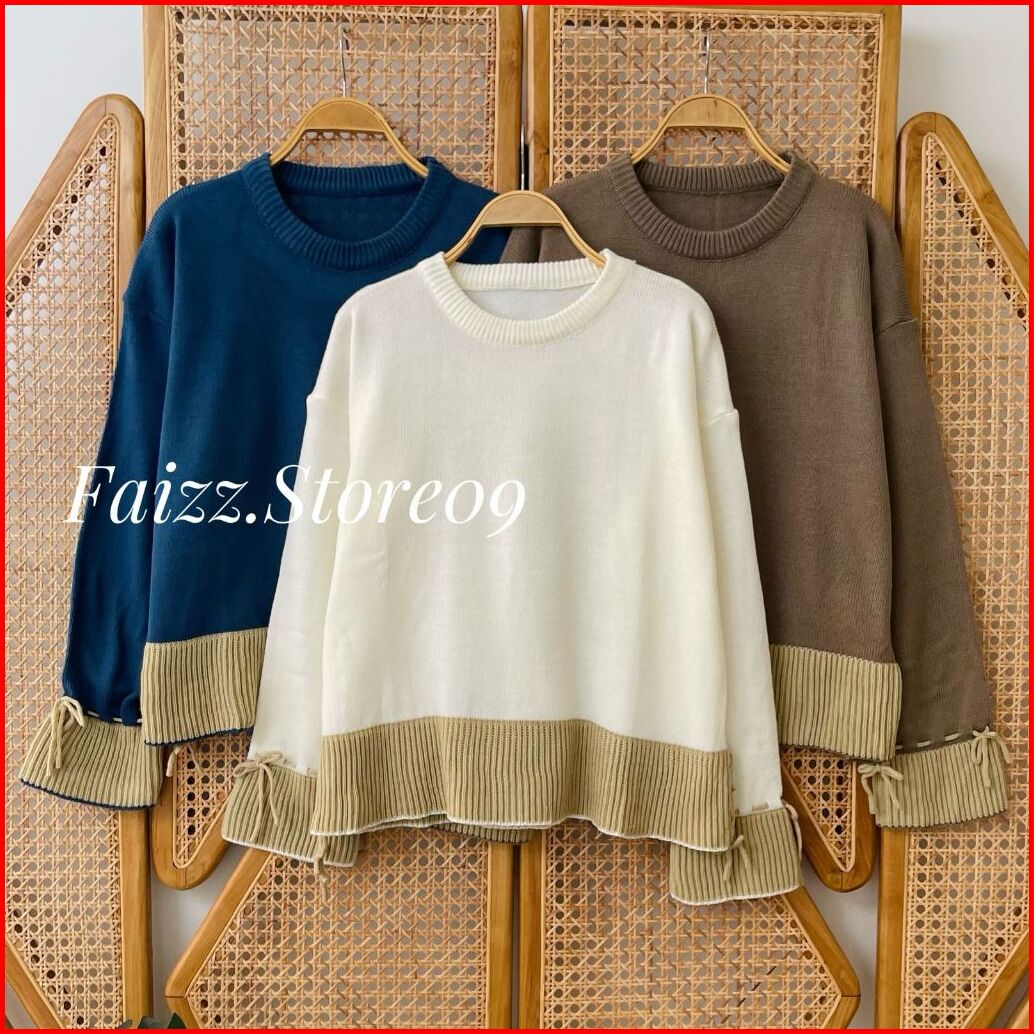 Lalla Blouse Ruffle - Atasan Sweater Crop Rajut Wanita Motif Tali Kur Korean Style