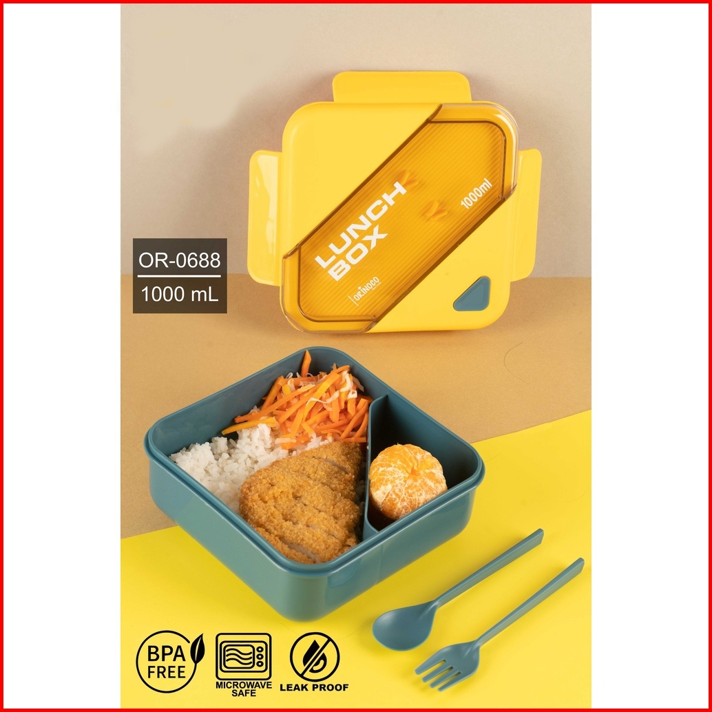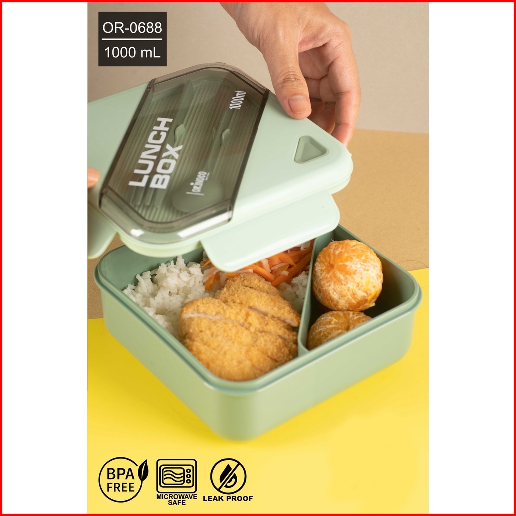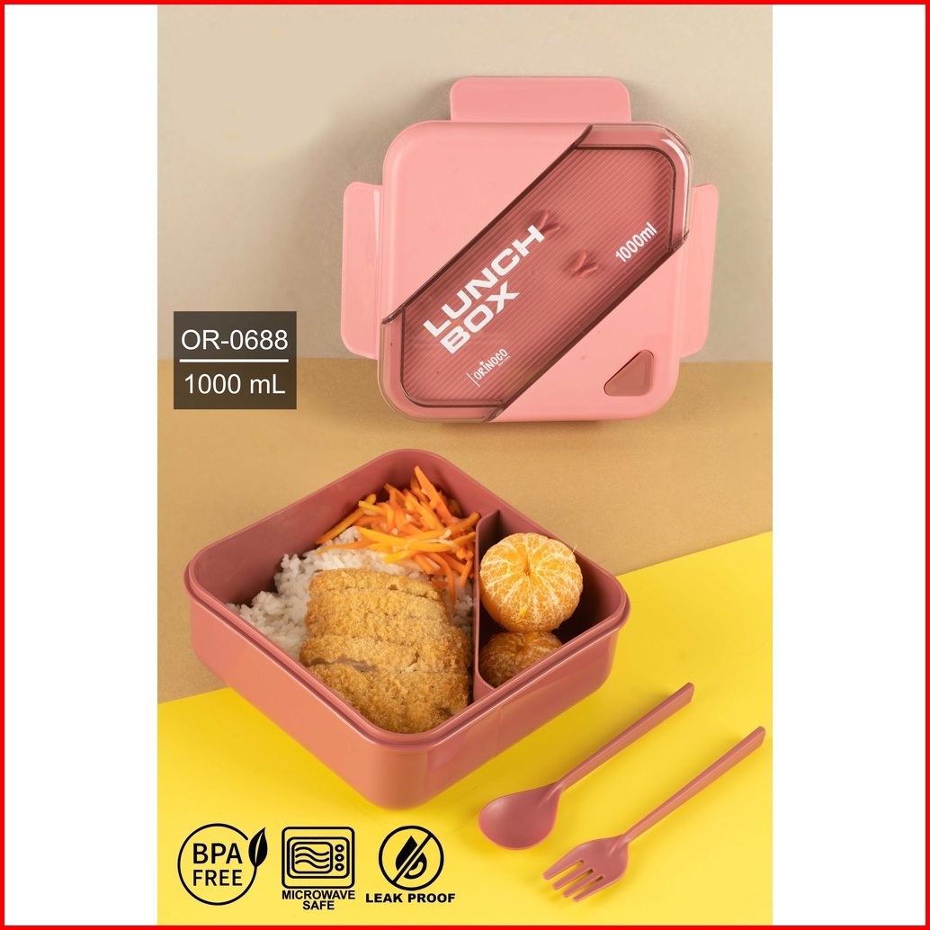 Tarsla Lunchbox Sekat Or-0688 Kotak Makan 1000 Ml Include Sendok Garpu Anti Tumpah Dan Bocor