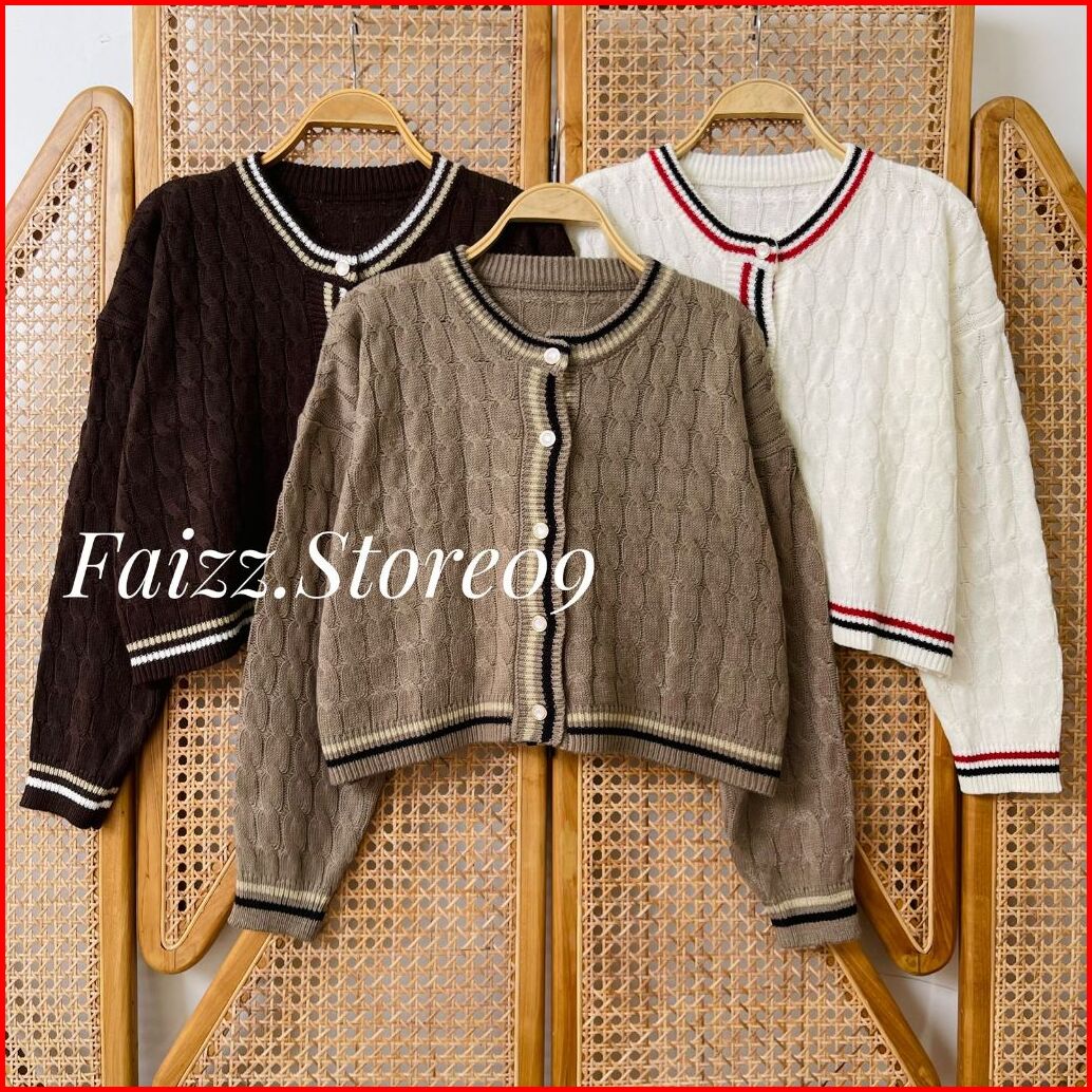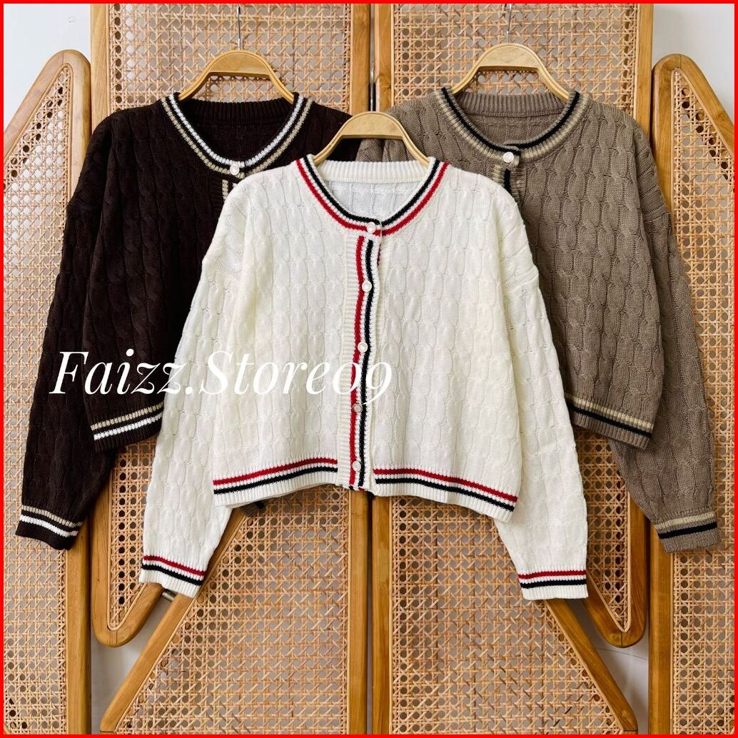 Zelda Cardy Knitwear - Outer Atasan Cardigan Rajut Crop Kancing Wanita Kekinian Motif Cable Baju Lucu Korean Style Premi