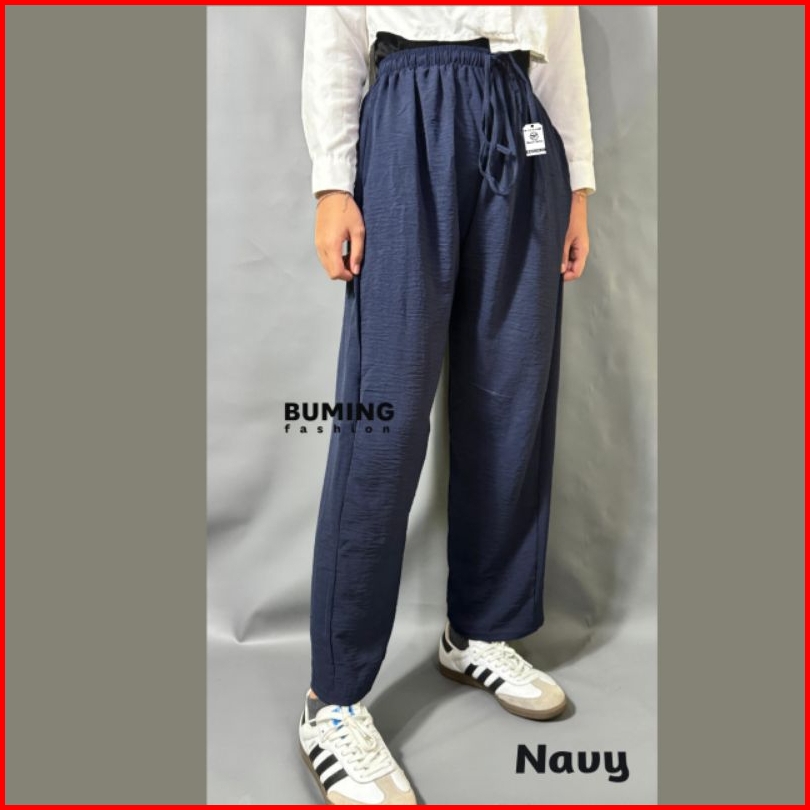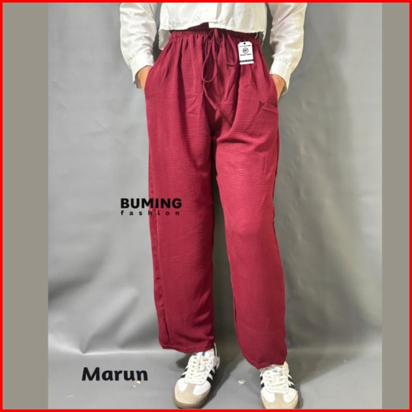 Buming Fashion Celana Kulot Cringkel Airflow Motif Tali Serut Aktif