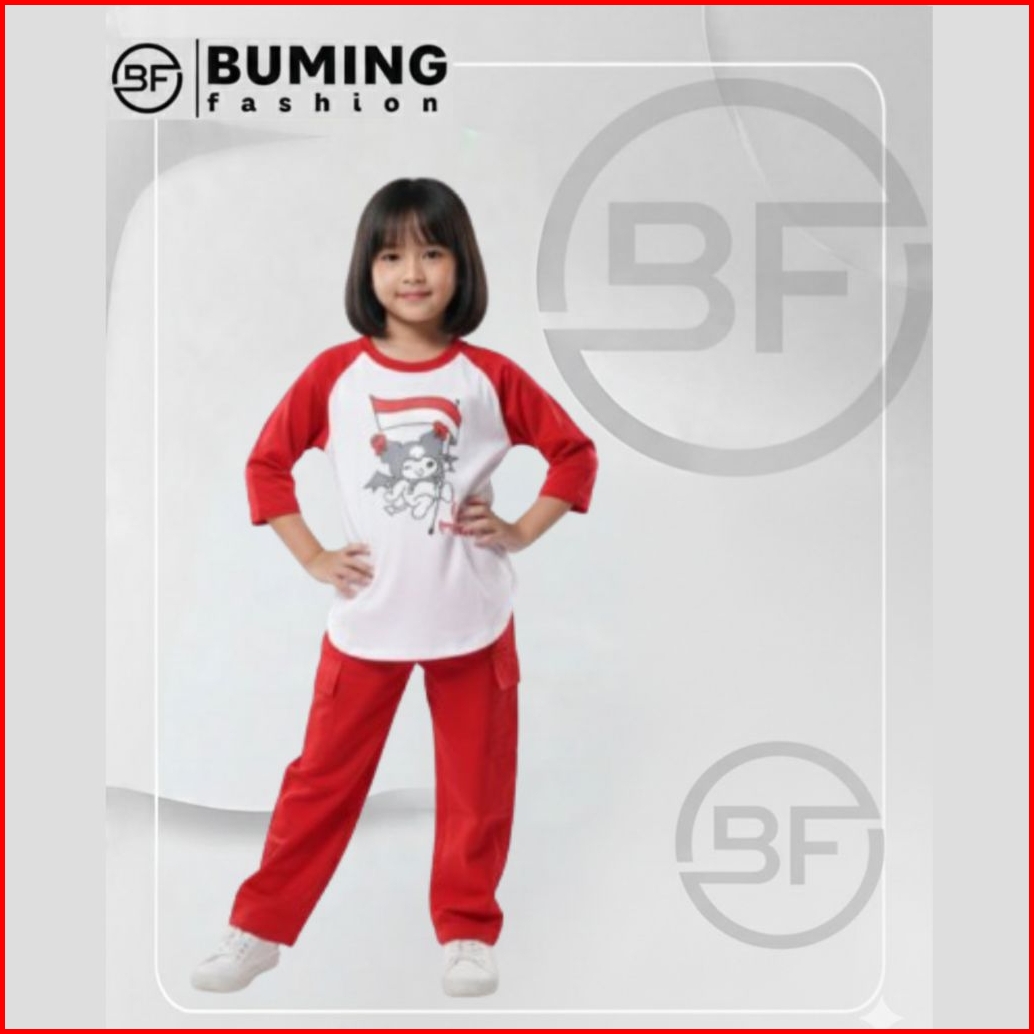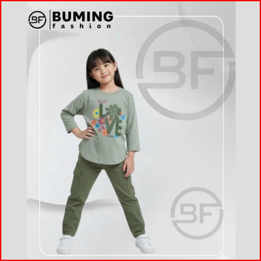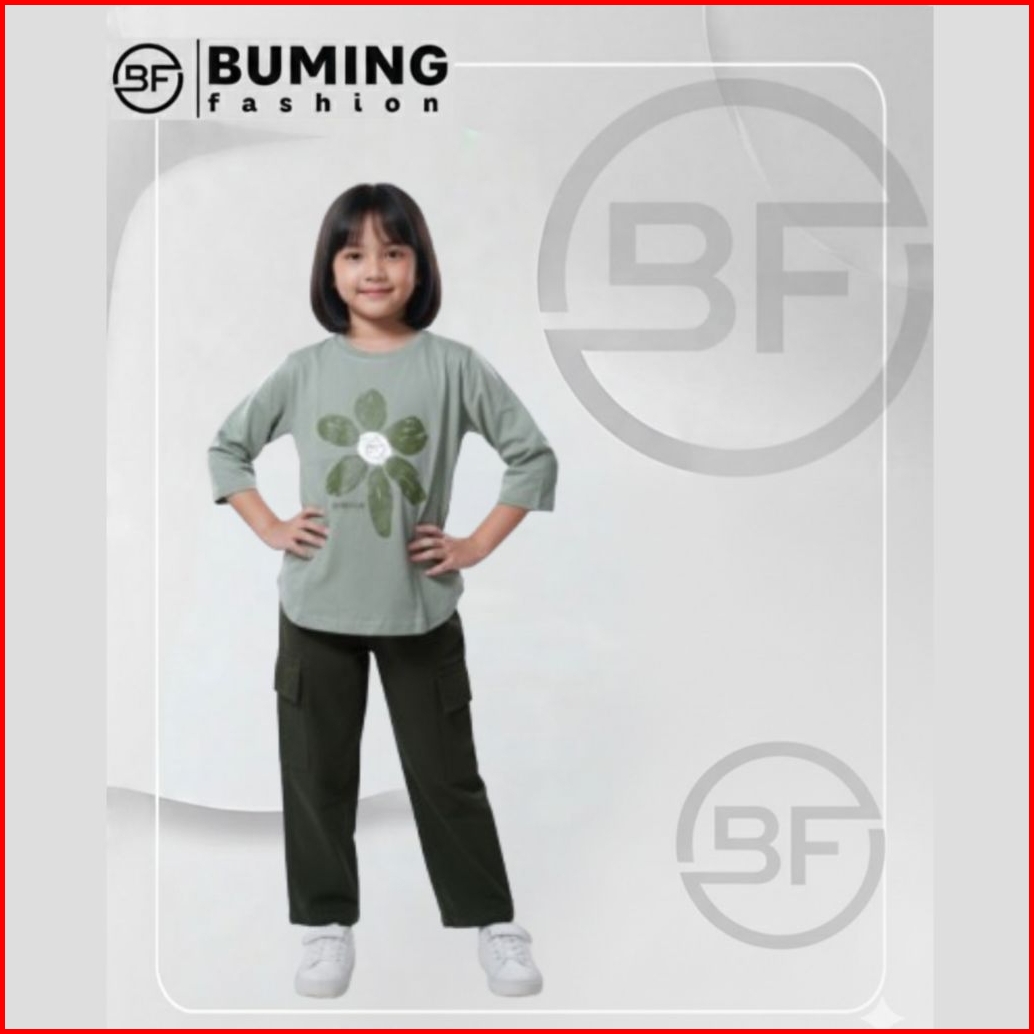 Buming Fashion Onset Anak Setelan Kombinasi Celana Cargo Bahan Catton24s Sablon Plastisol