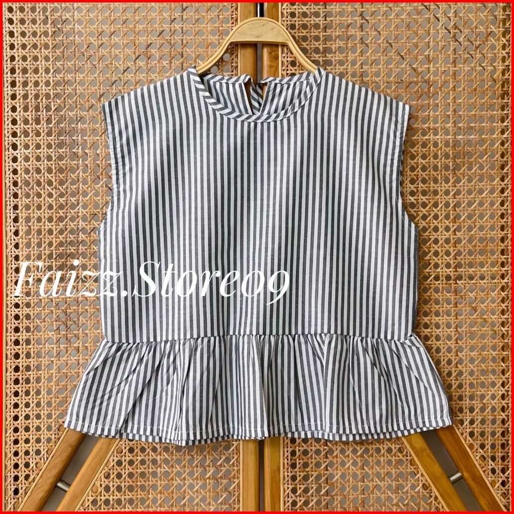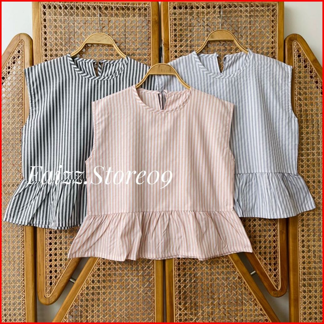Moratta Vest Inner Top Stripe Tanpa Lengan Atasan Wanita Ruffle Gaya Korean Style Premium