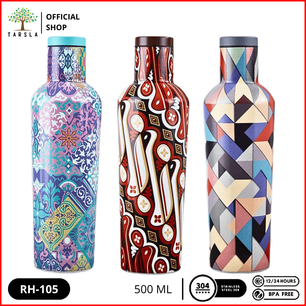 Tarsla Botol Minum Termos Rh-105 Vacuum Flask Tumbler 500 Ml Tahan Panas Dingin - Batik Mozaic