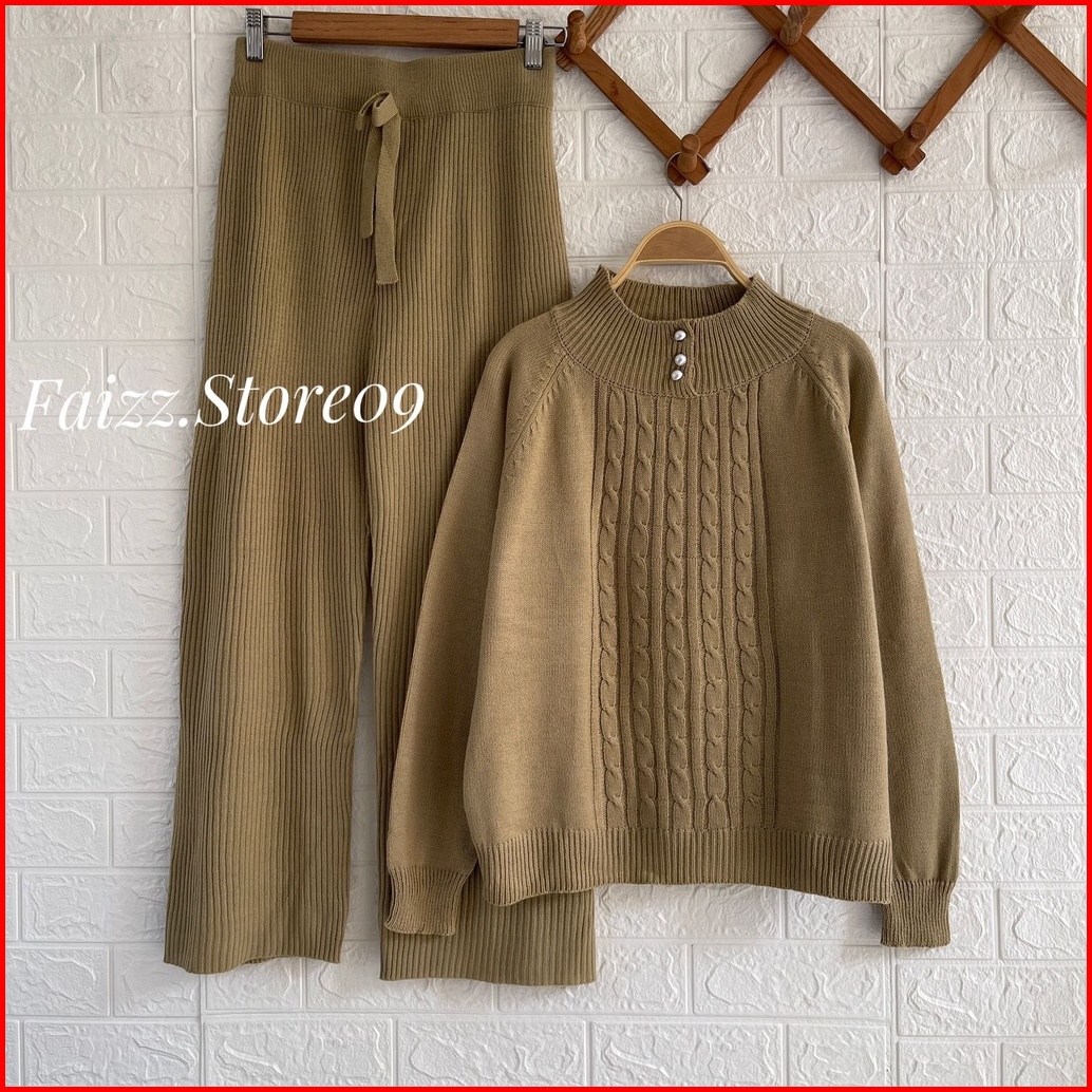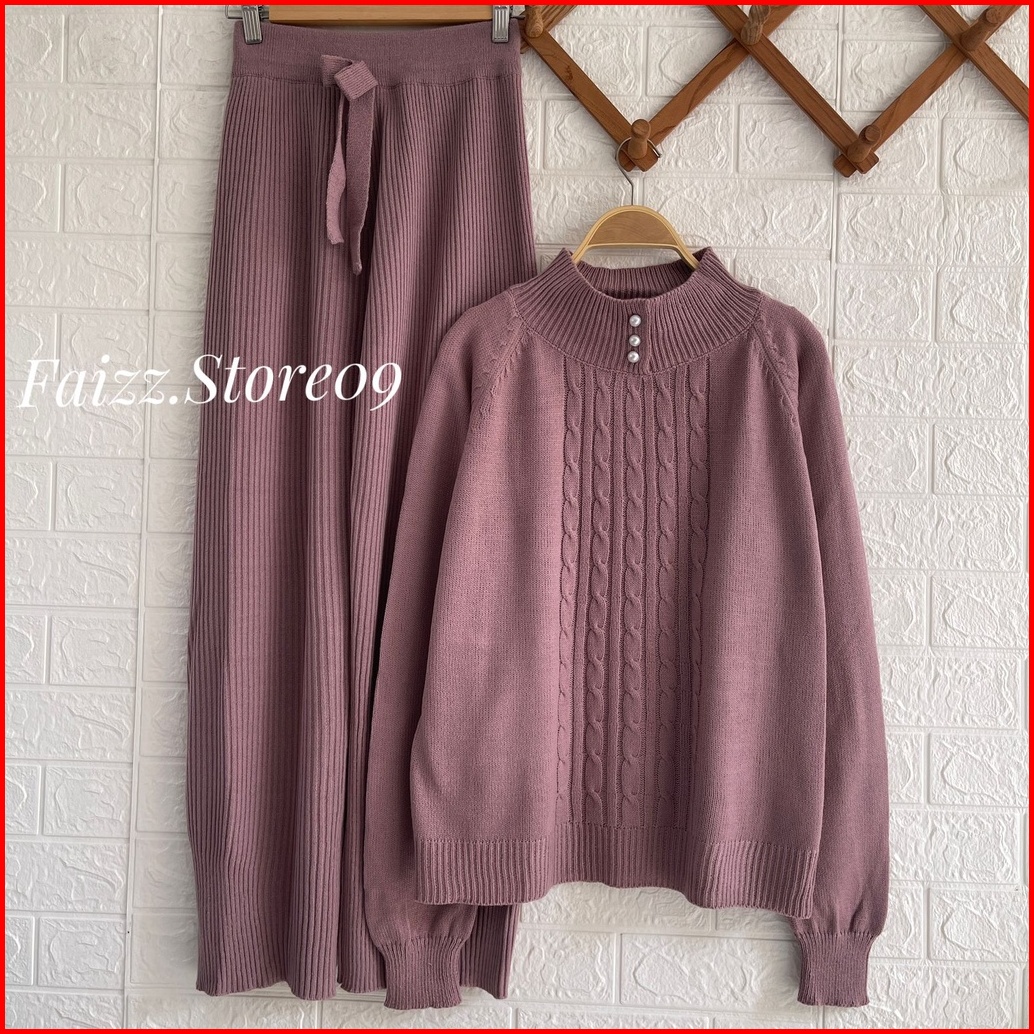 Oneset Sweater Rajut Hasna Setelan Celana Kulot Rajut Wanita