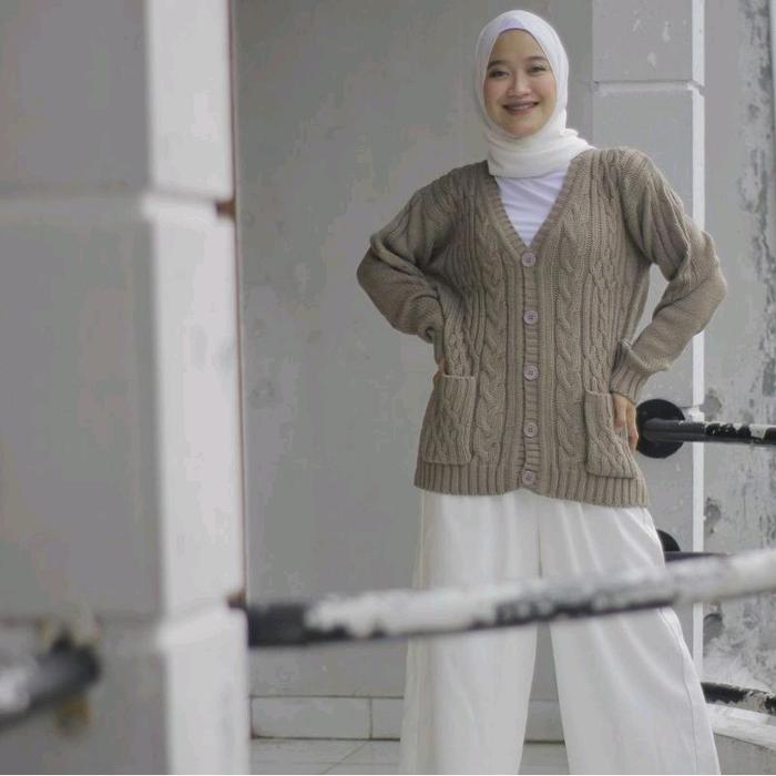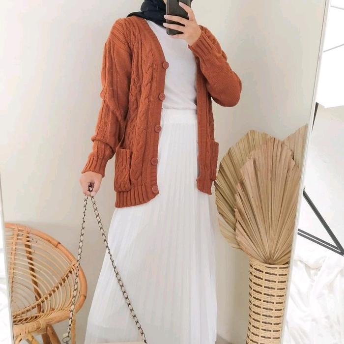 KARDIGAN RAJUT CABLE TEBAL KNITWEAR CARDIGAN OUTER PANJANG ATASAN - MINT