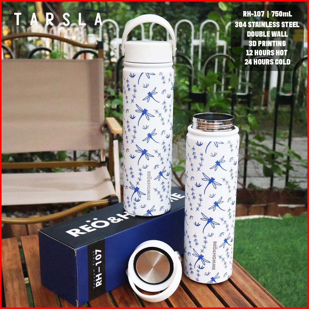 Tarsla Botol Minum Termos Rh-107 Vacuum Flask Tumbler 750 Ml Tahan Panas Dingin - Blue White