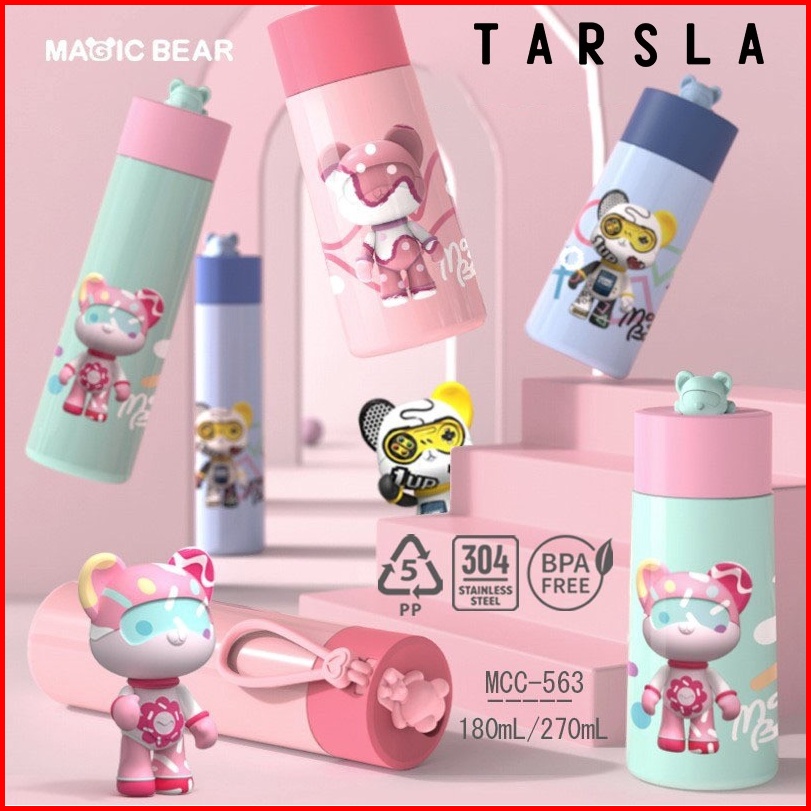 Tarsla Botol Minum Anak Mcc-563 Thermos Stainless Vaccum Flask 270ml With Handle Silicon Tahan Panas Dingin - Bpa Free