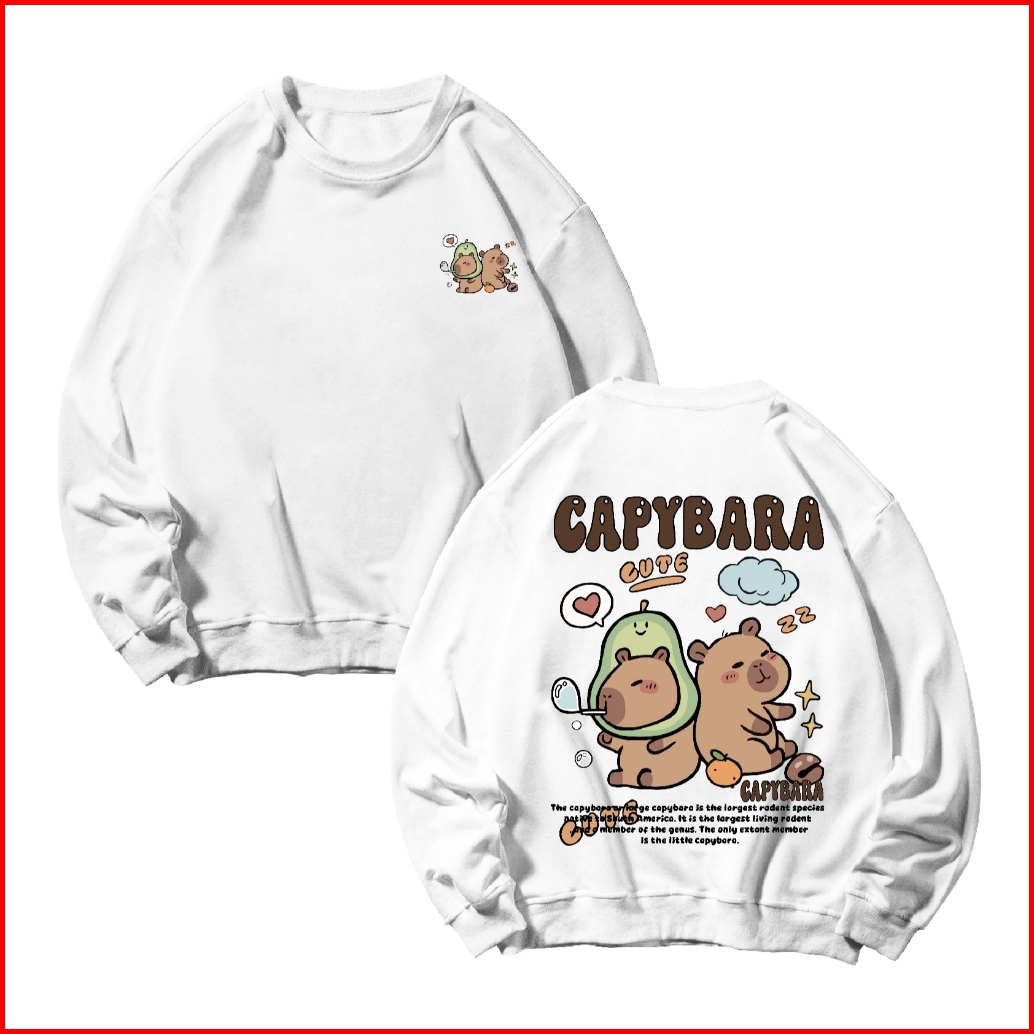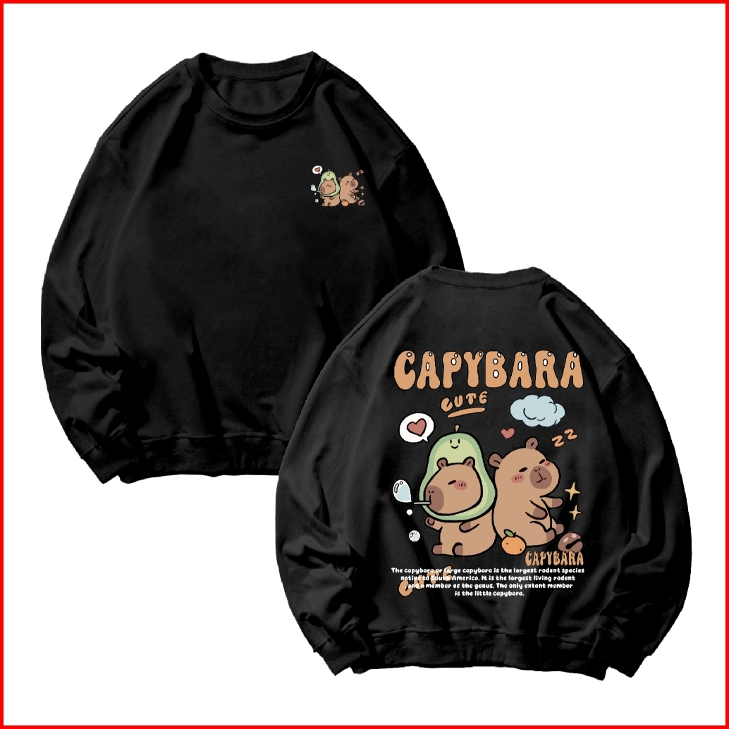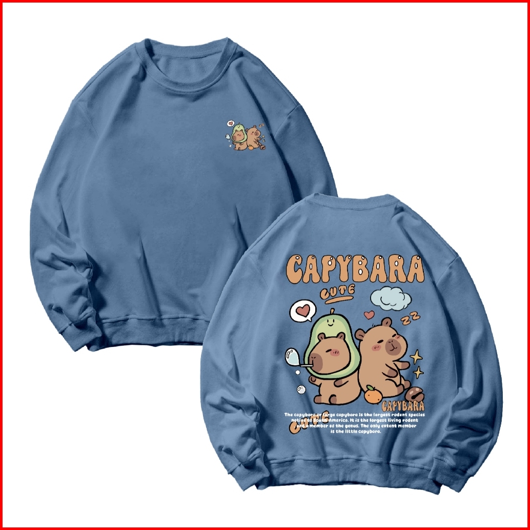 Basic Sweater Crewneck Long Sleeve Capybara Size M-xxl Pria Wanita