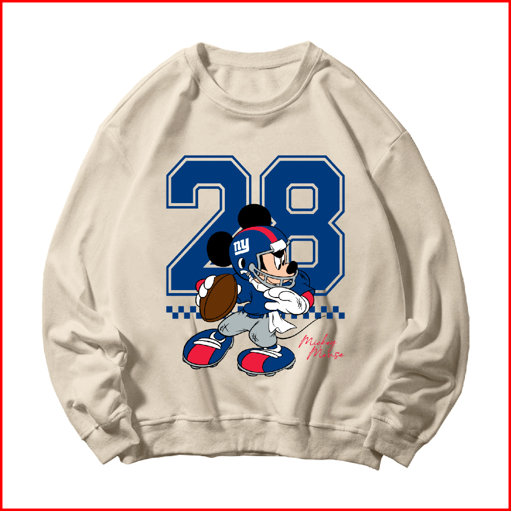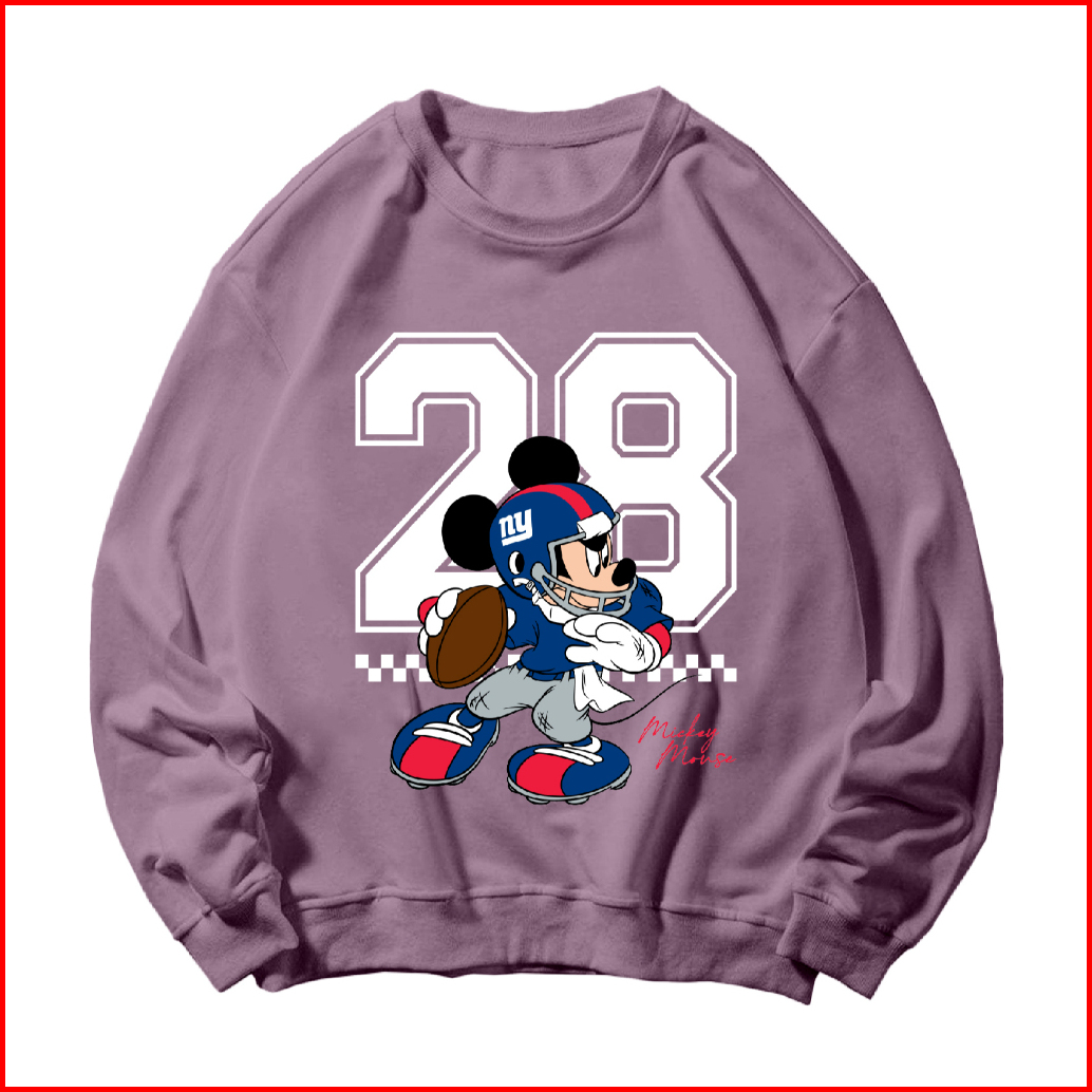 Basic Sweater Crewneck Long Sleeve Mickey Baseball Size M-xxl Pria Wanita