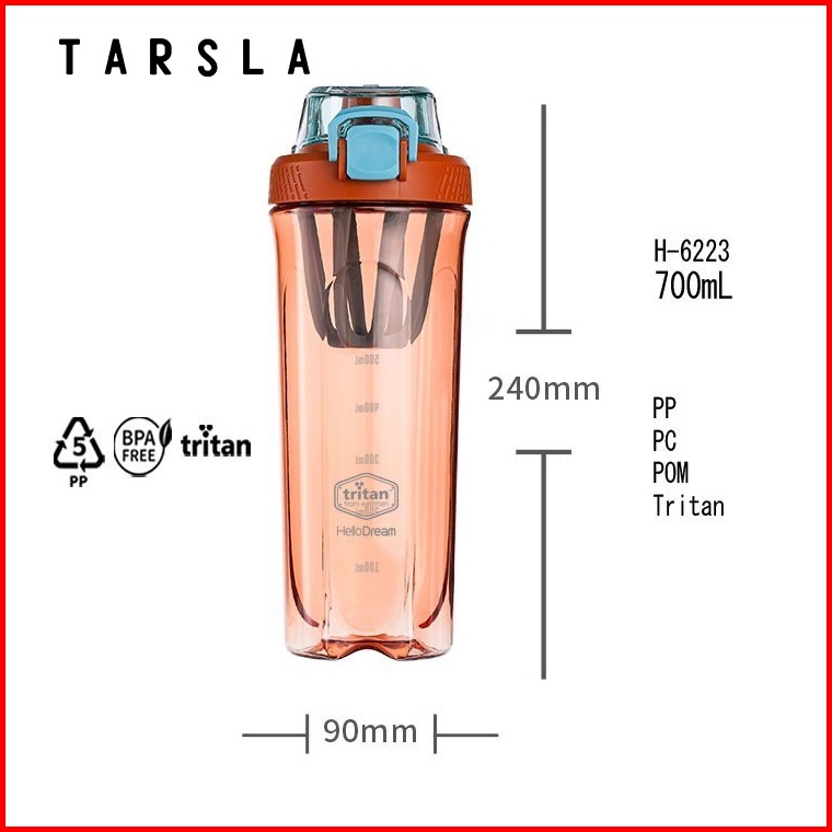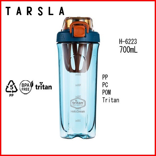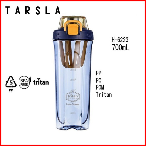 Tarsla Botol Minum Sporty H6223 Tritan Infused Water 700 Ml With Strainer - Navy Yellow
