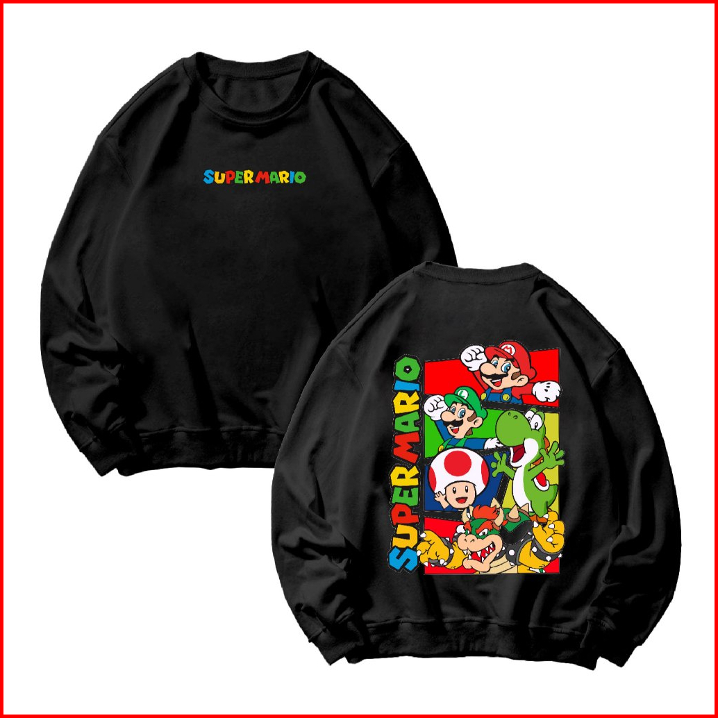Basic Sweater Crewneck Long Sleeve Super Mario Size M-xxl Pria Wanita