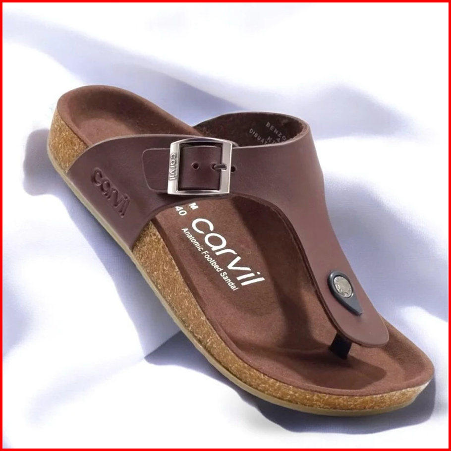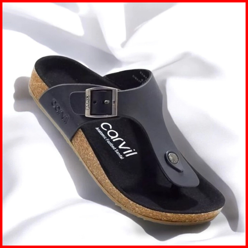 Sandal Carvil Jepit Sandal Pria Original Bahan Kulit Warna Hitam Tan Dan Cokelat Sandal Casual