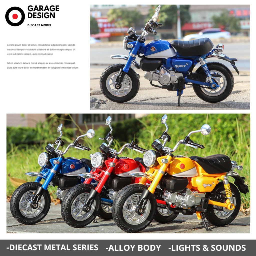 Diecast 1:12 Honda Monkey 125 Motor Bike - Motor Classic Miniatur Skala 1:12 Terdapat Lampu & Suara