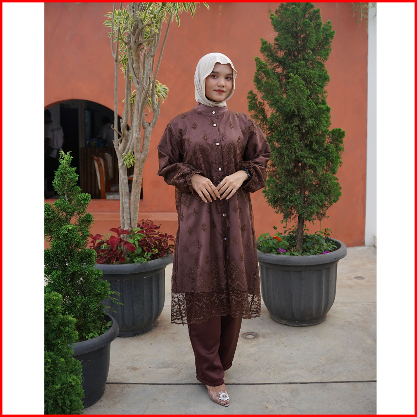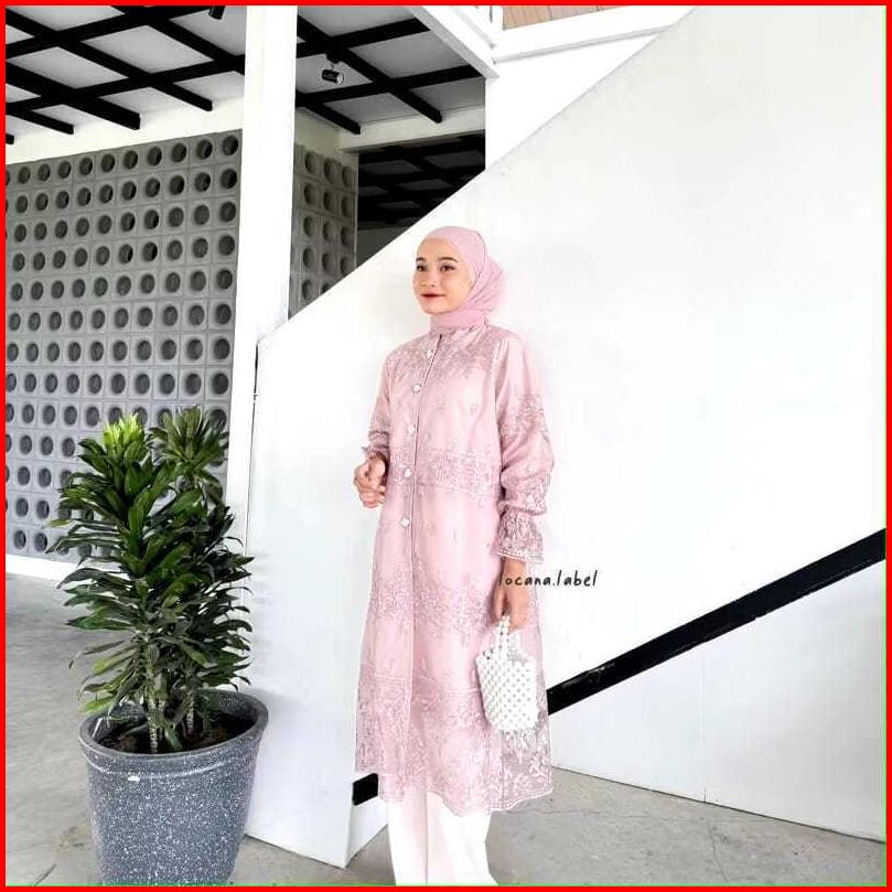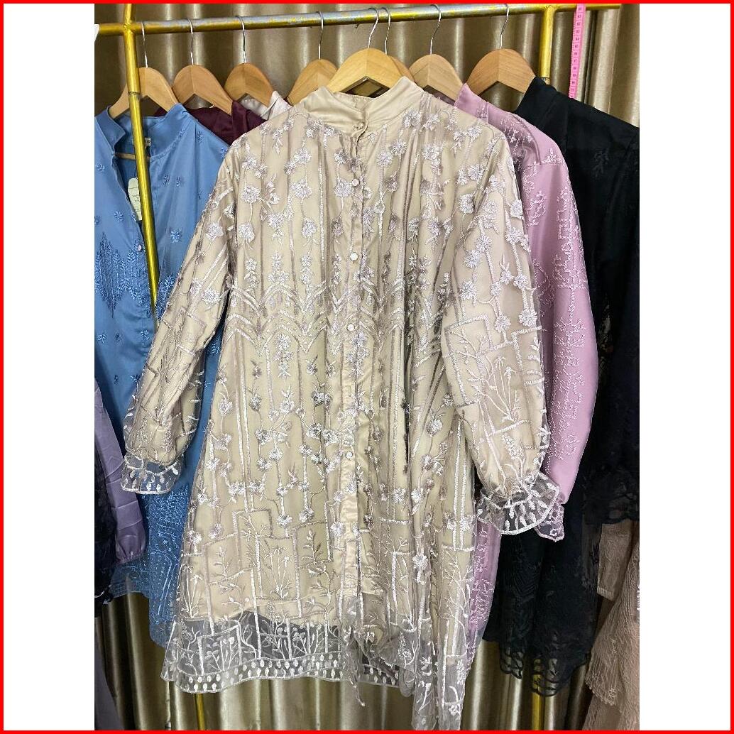 Ready Aluna Tunik Bahan Silk Mix Tulle Brukat Ld 100 - 120 Baju Kondangan Outfit Lebaran Ootd Ied Series Fashion Muslim