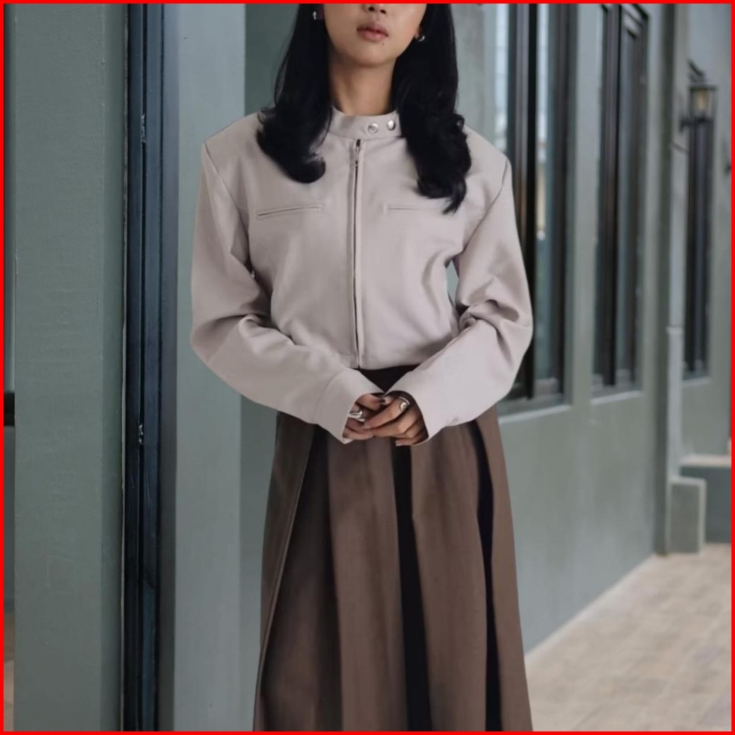 Cropped Jacket Jacket Crop Wanita Lengan Panjang Atasan Outer Full Zipper