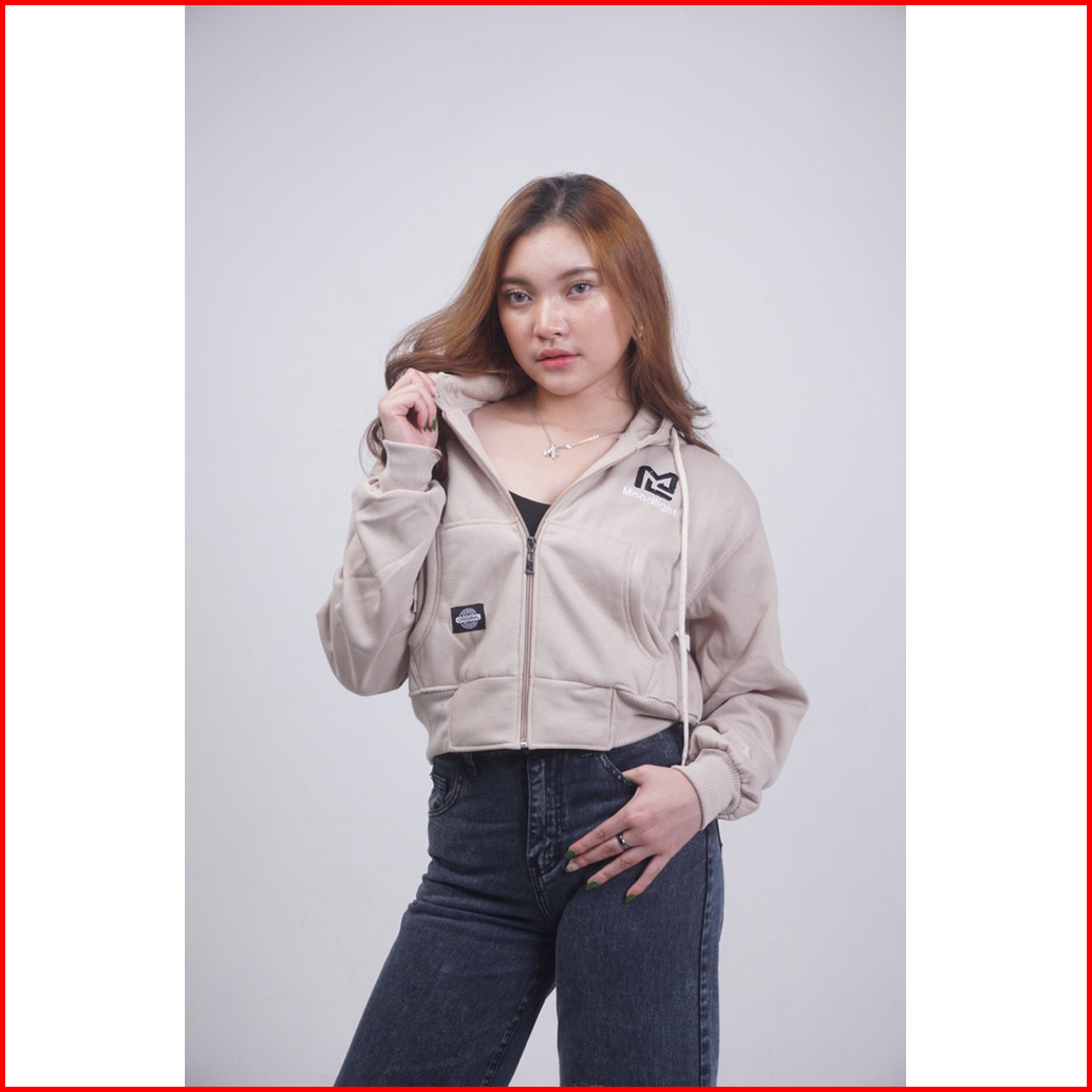 Hoodie Zipper Croptop Bahan Tebal 280 Gsm Hoodie Zipper Crop Top Wanita Kekinian Jaket Weate...