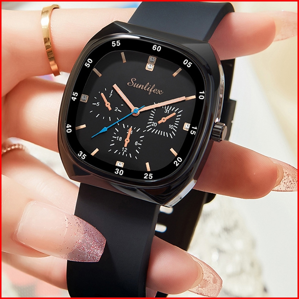 Sunlifex 3107 Jam Tangan Wanita Korea Elegan Kuarsa Luminous Tali Silikon Anti Air Jam Tangan Cewek