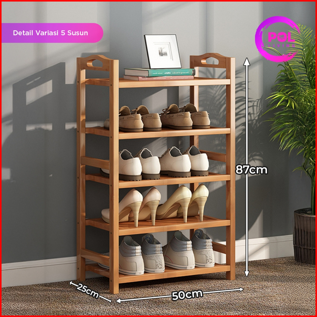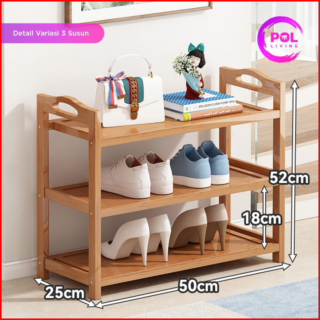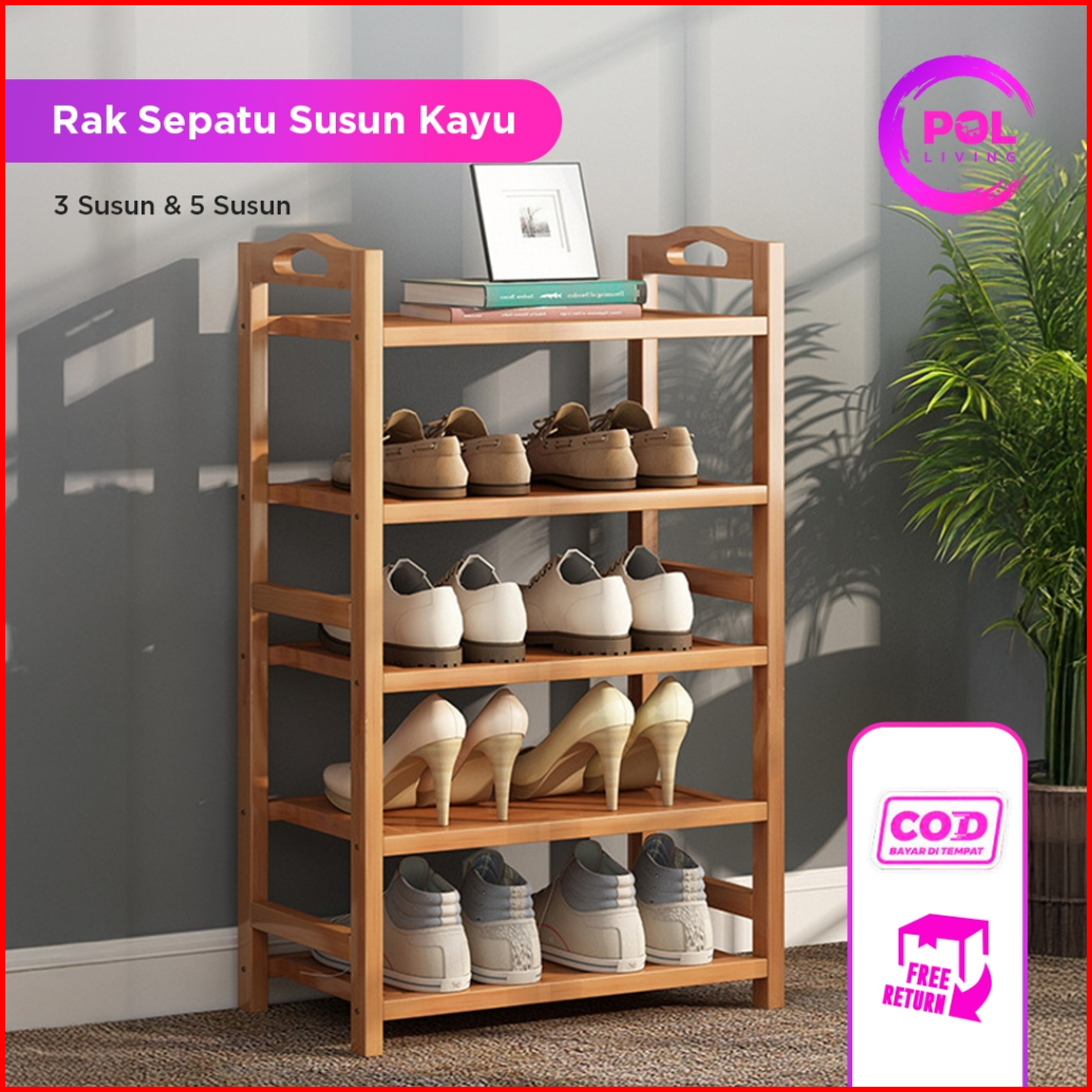 Pol - Rak Sepatu Sandal Kayu 3 5 Susun