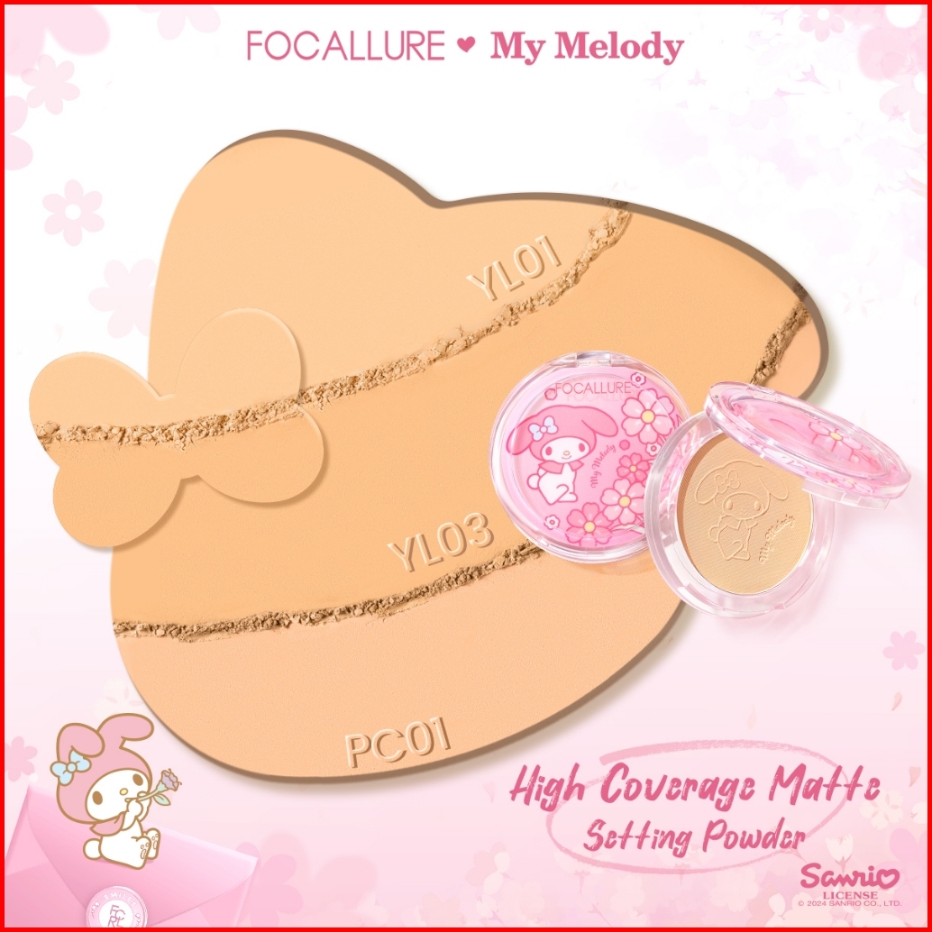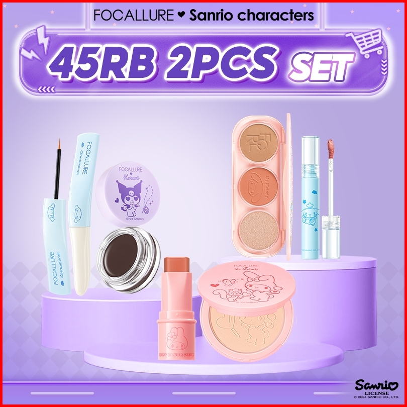 Focallure X Sanrio 2pcs Face Set Foundation Powder 3in1 Palette Blushon Contour