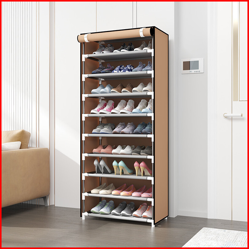 Rak Sepatu Kain 5 9 Susun Ada Penutup Anti Debu Tertutup Rak Lemari Sepatu Ritsleting Portable Menghemat Ruang