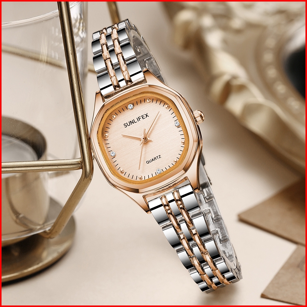 Sunlifex 6015 Jam Tangan Wanita Anti Air Tali Paduan Mutiara Berlian Korea Kecil Elegan Kasual Cewek