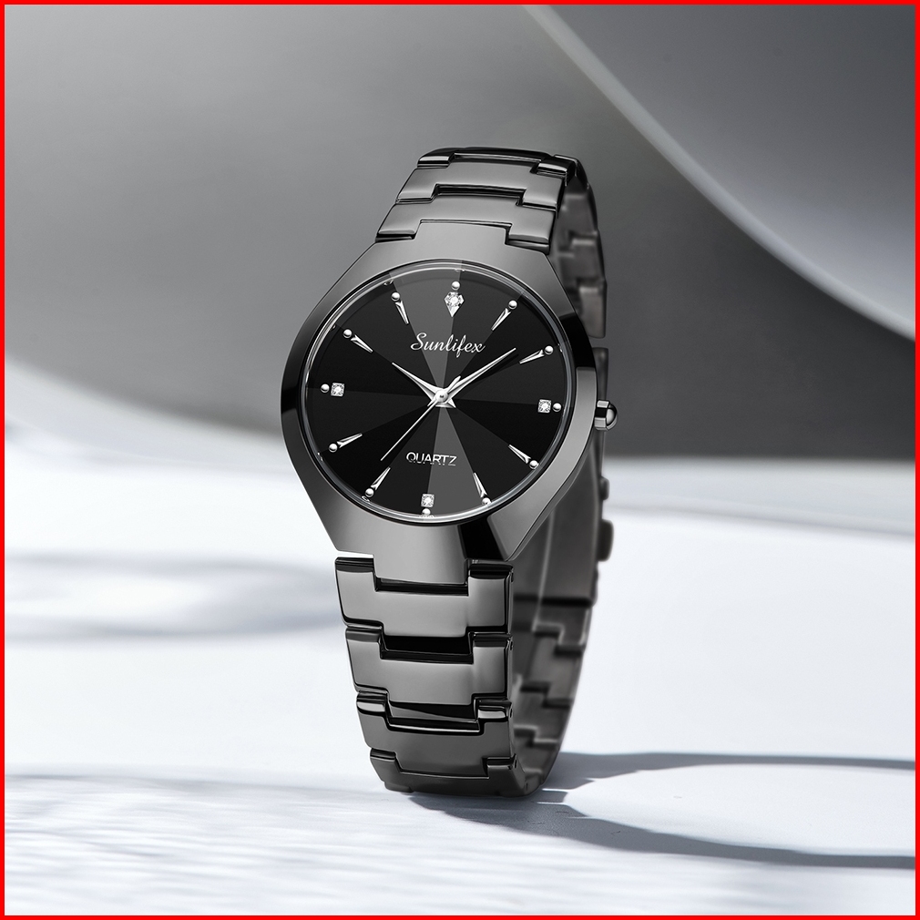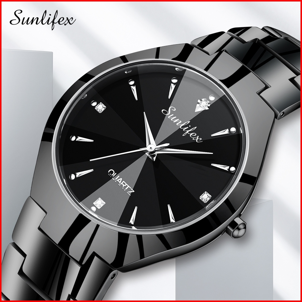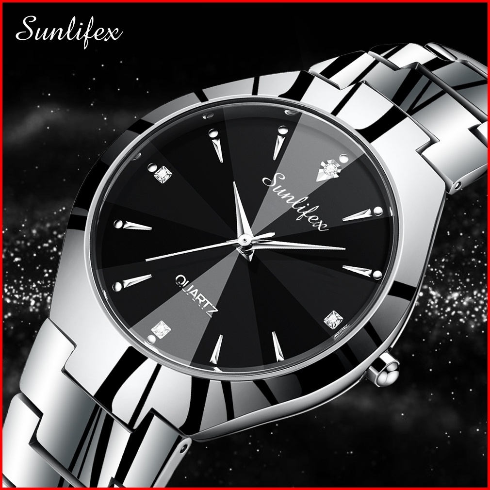 Sunlifex 9090m Jam Tangan Pria Anti Air Bisnis Kasual Belah Ketupat Cermin Tali Stainless Steel Kuarsa Jam Tangan Pria O