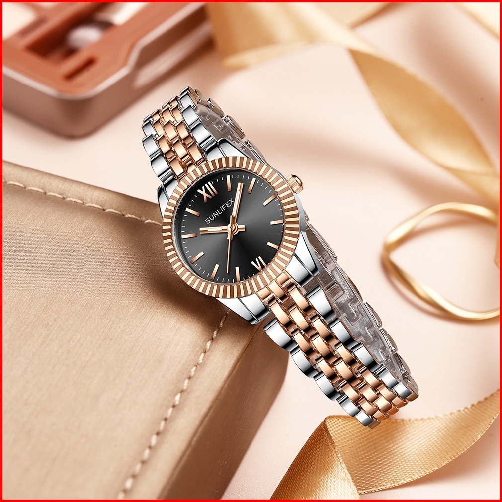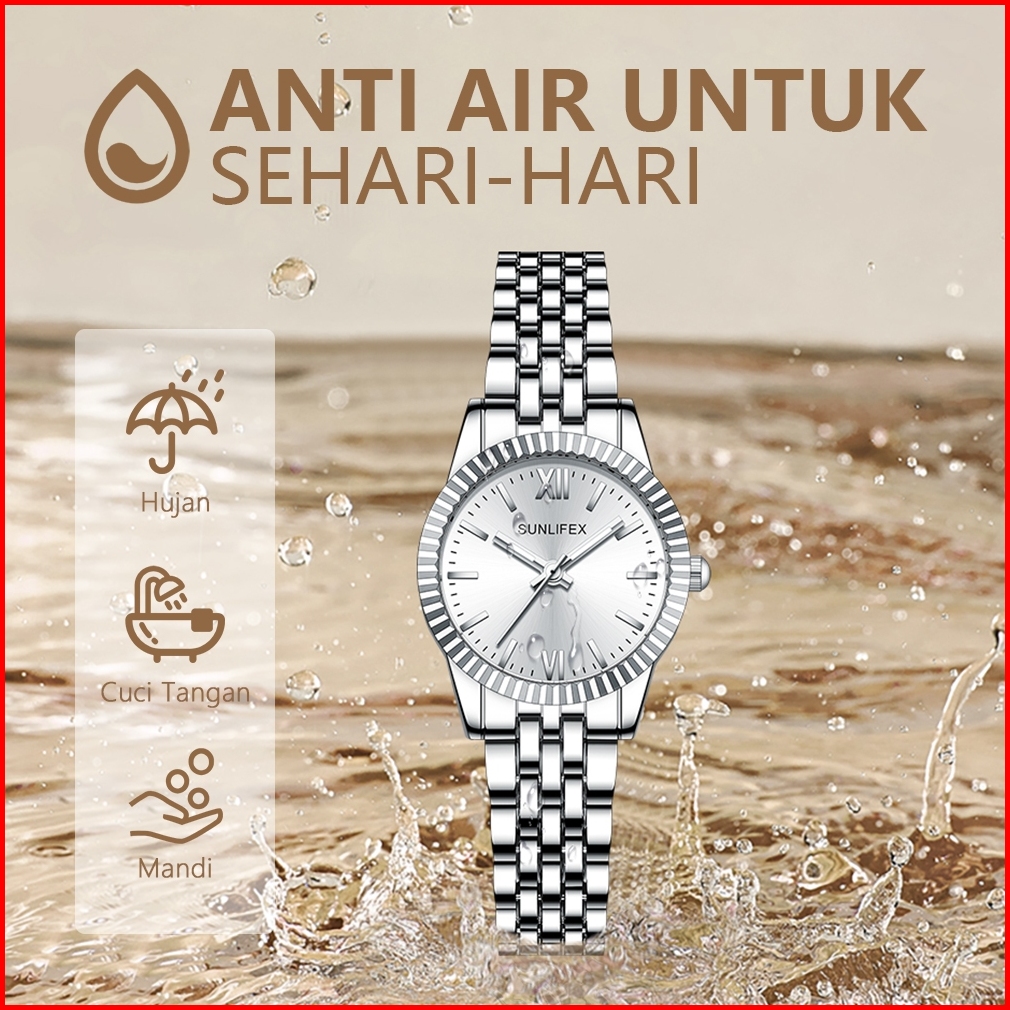 Sunlifex B001 Jam Tangan Wanita Korea Anti Air Tali Paduan Elegan Retro Simple Cewek Original Watch