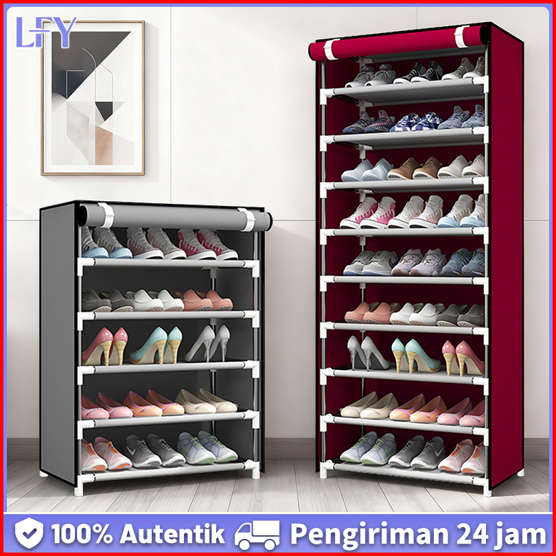 Rak Sepatu Kain Besar Murah Lemari Sepatu Portable Shoes Rack With Dust Cover Rak Sepatu Tahan Air