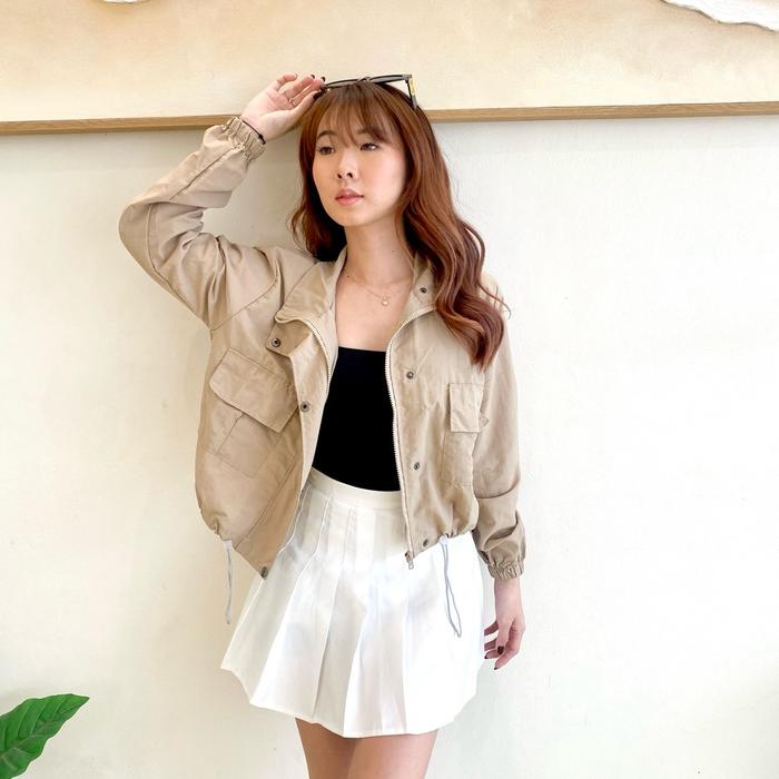 AVE 012 - MITHEL OUTER JACKET PARACHUTE | ATASAN CROP JAKET PARASUT LENGAN PANJANG WANITA CASUAL - DENIM, SIZE L (LD 106