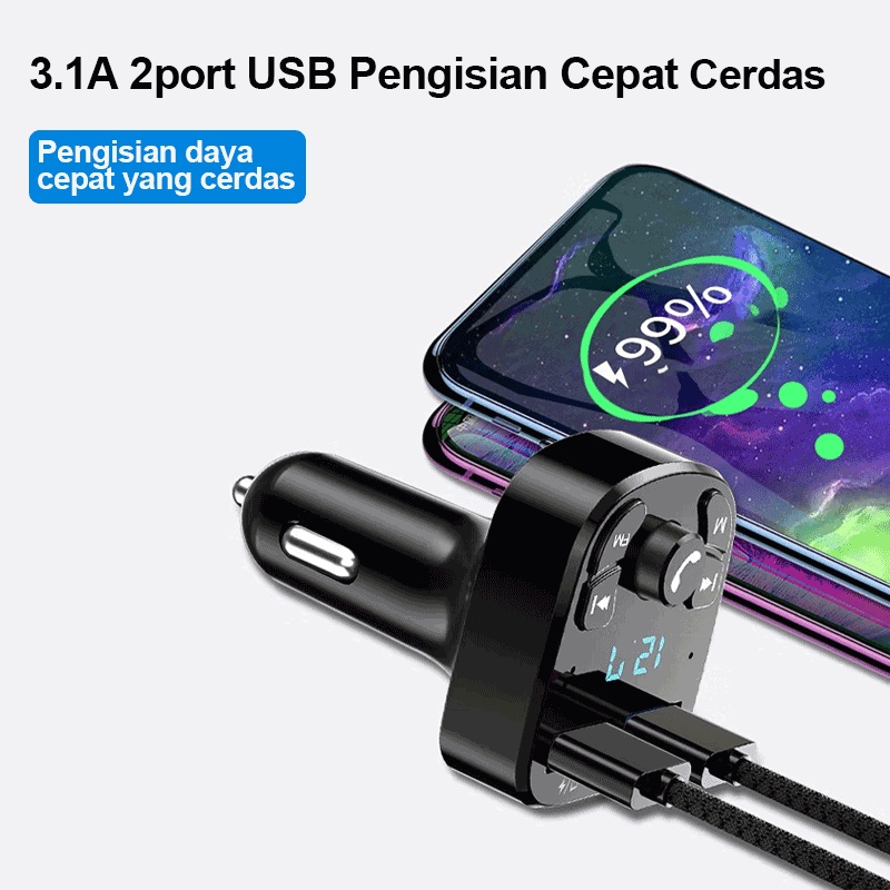 [PROMO] ZACRO Car Charger 2 Port USB Chargers FM & Bluetooth Transmitters Mobil Dual Port USB + MP3 Player