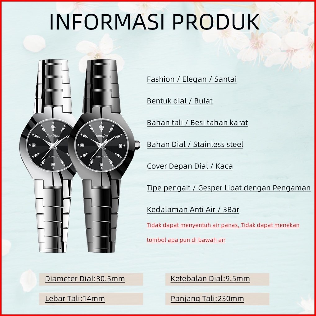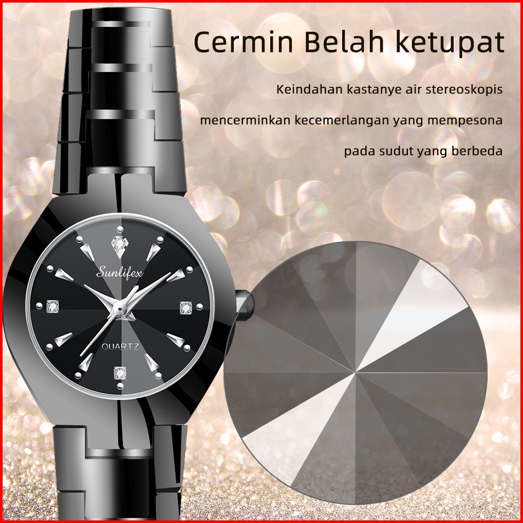Sunlifex Jam Tangan Wanita Kuarsa Anti Air Stainless Steel Berlian Elegan Jam Tangan Cewek Original 9090