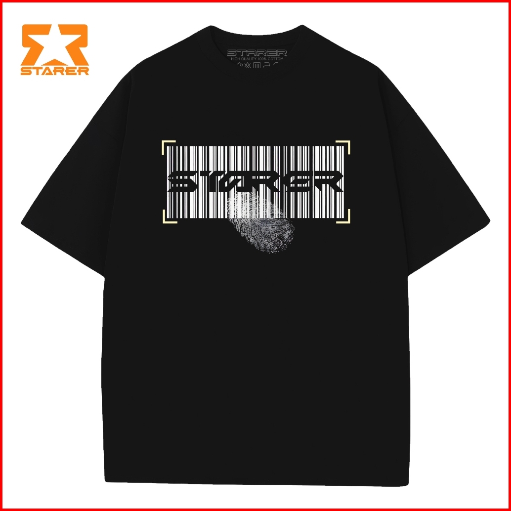 Starer Kaos T-shirt Oversize Pria Wanita Distro Lengan Pendek Polos Cotton Baju Sablon Barcode 0013