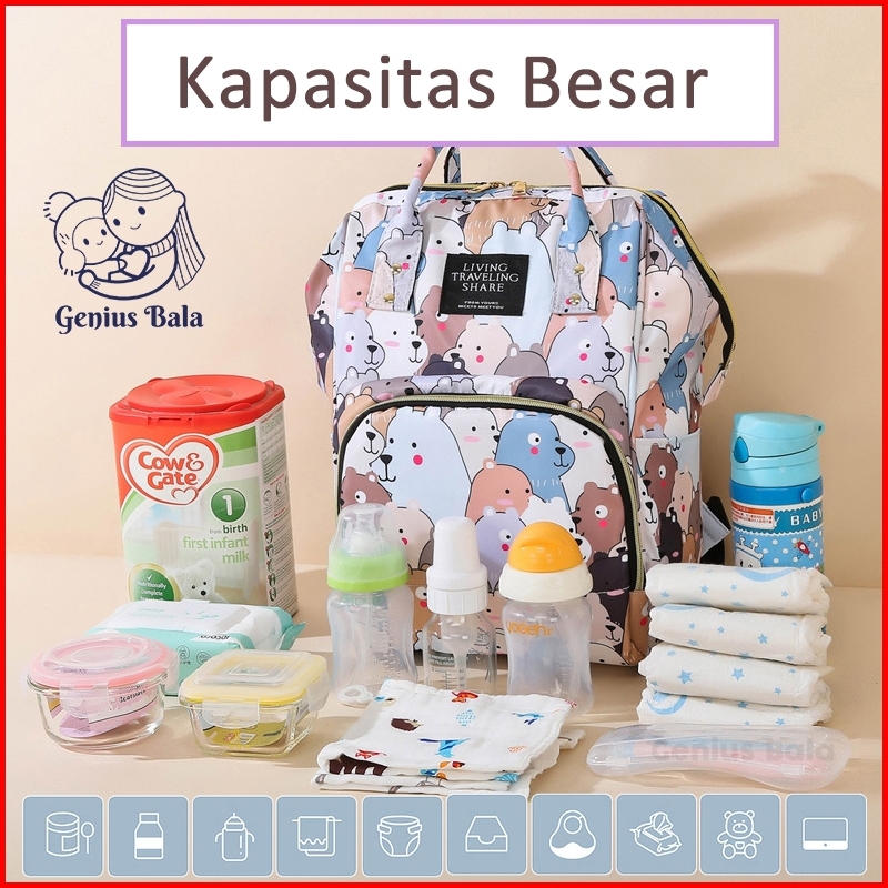 Genius Bala Tas Diaper Bayi Multifungsi Baby Diapers Bag Perawatan Tas Perlengkapan Ransel Backpack Tas Ibu Ransel Ukura