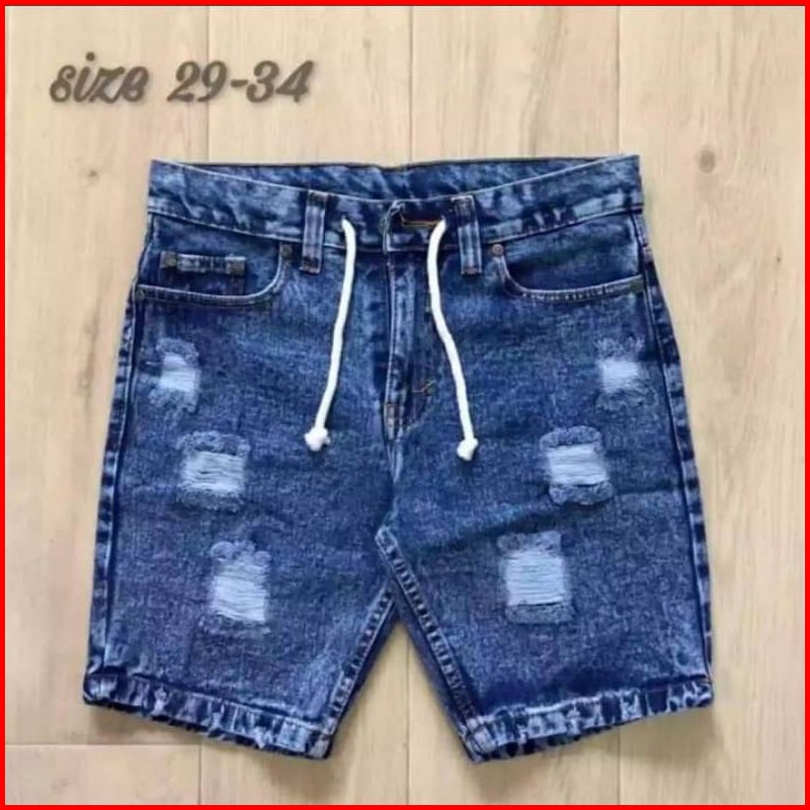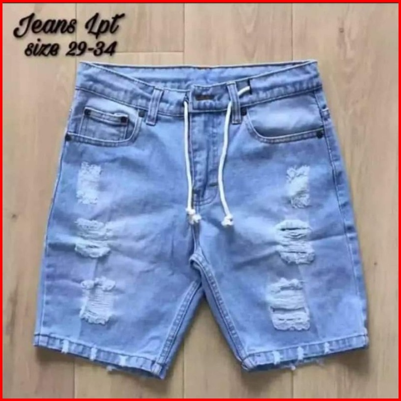 Celana Jeans Pendek Pria Sobek Robek Bahan Tebal Dan Lembut