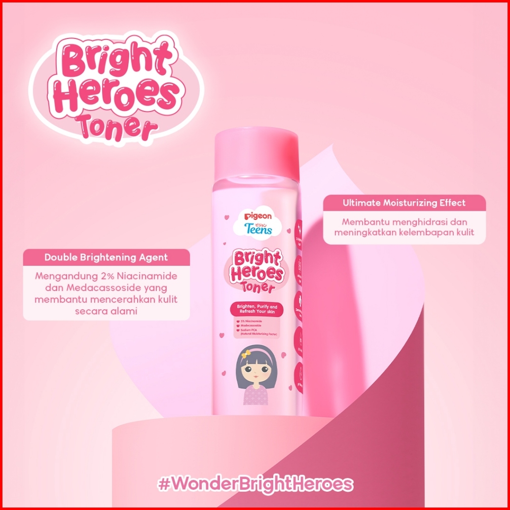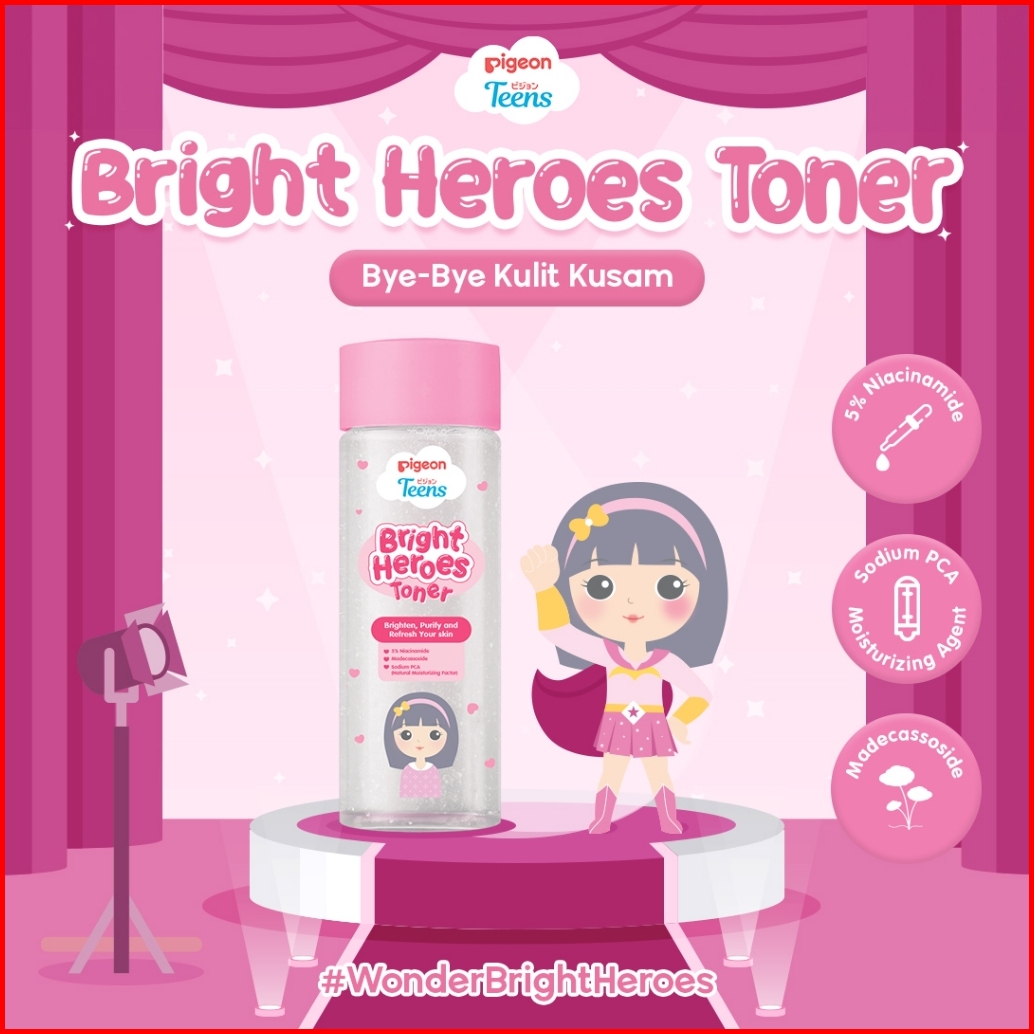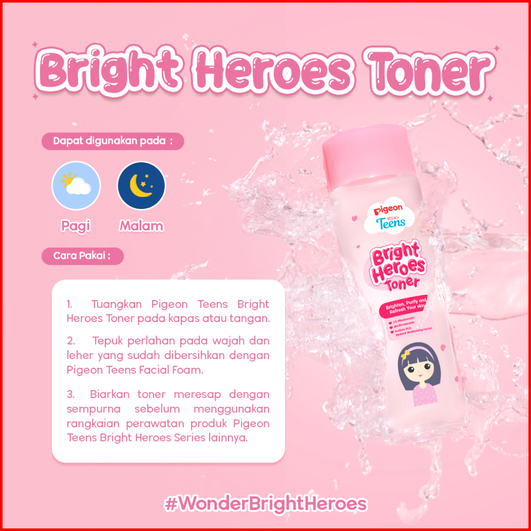 Pigeon Teens Bright Heroes Toner 100ml Skincare Remaja Niacinamide 5 Moisturizing Agent Alcohol Free Ringan Mencerahkan