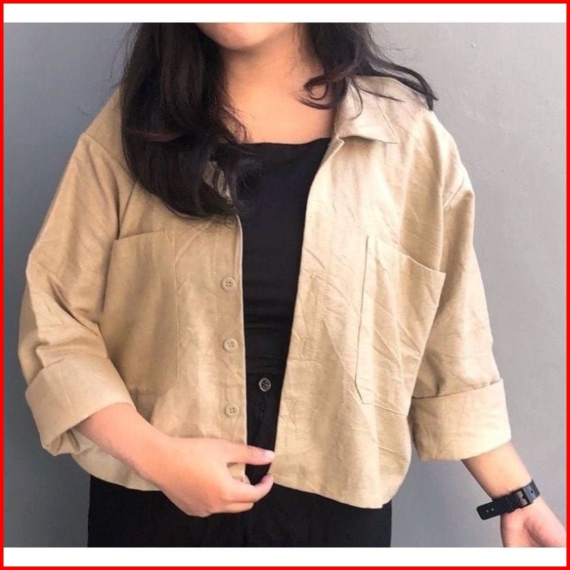 Kemeja Crop Linen Oversize Kemeja Shirt Linen Outer Crop