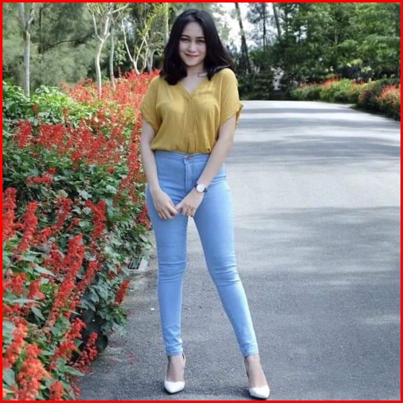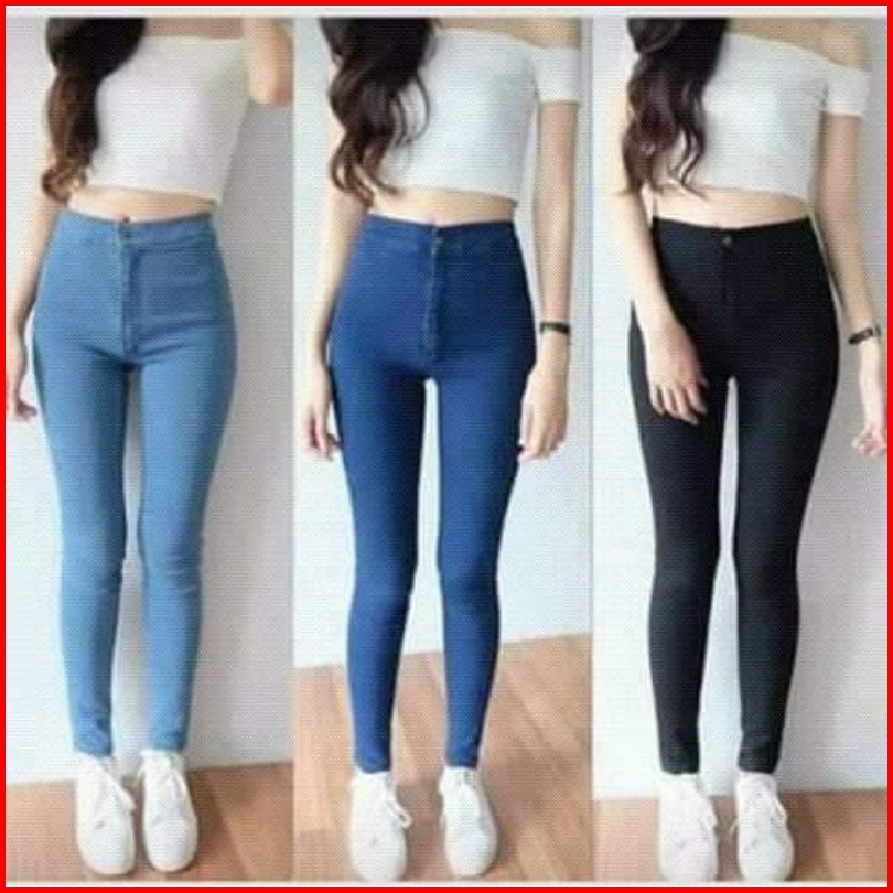 Celana Highwaist Jeans Polos Celena Panjang Cewek Hw Melar