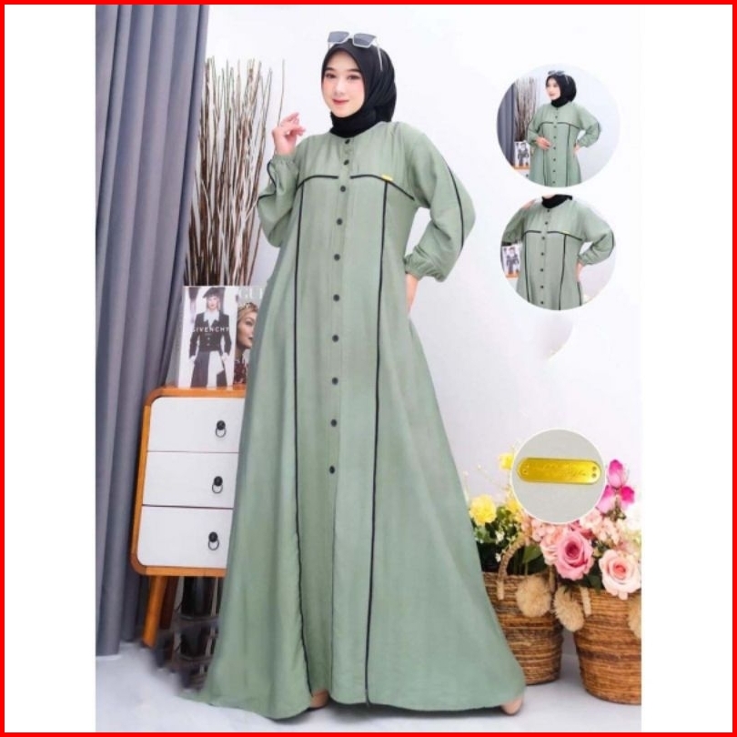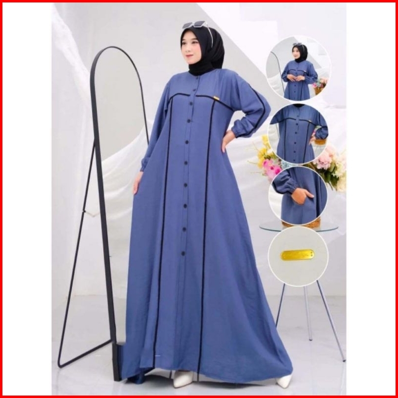 Gamis Jumbo List Polo Linen Dress Shelina Polo Linen List