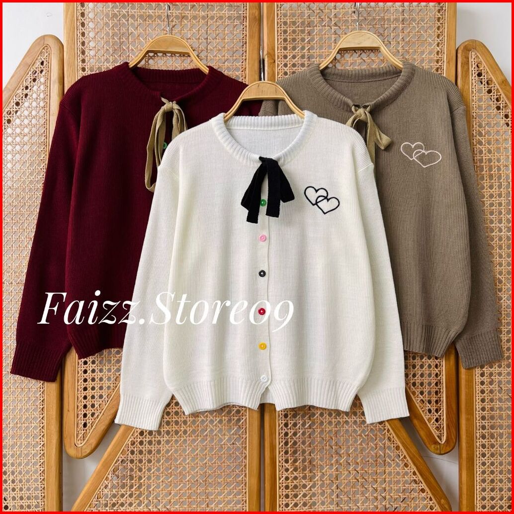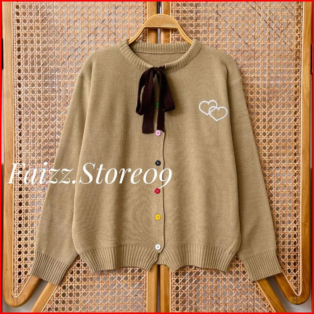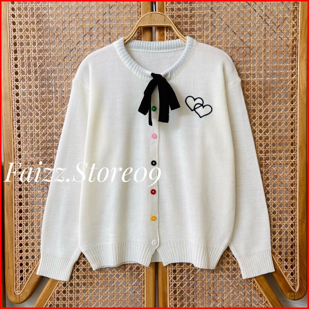 Kinaya Cardy Knitwear - Atasan Cardigan Rajut Wanita Kancing Pelangi Tali Pita Motif Bordir Love Lucu Korean Style Premi