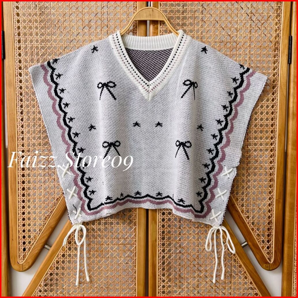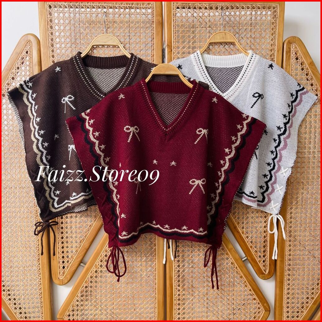 Ayundi Vest Knit - Atasan Rompi Rajut Wanti Kerah V-neck Motif Pita Tali Kur Samping Lucu Desain Moderen Korean Style Pr