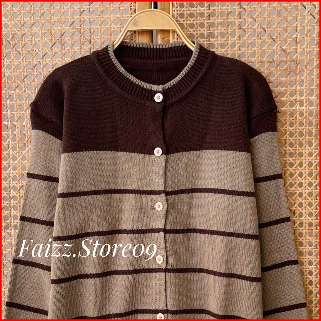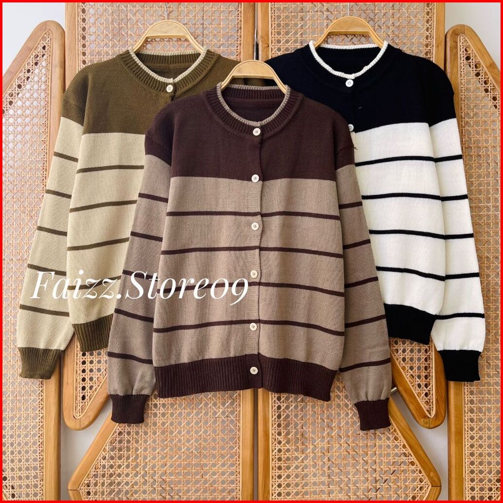 Shiira Cardy Knitwear - Outer Atasan Cardigan Rajut Kancing Wanita Motif Stripe Baju Lucu Korean Style Premium