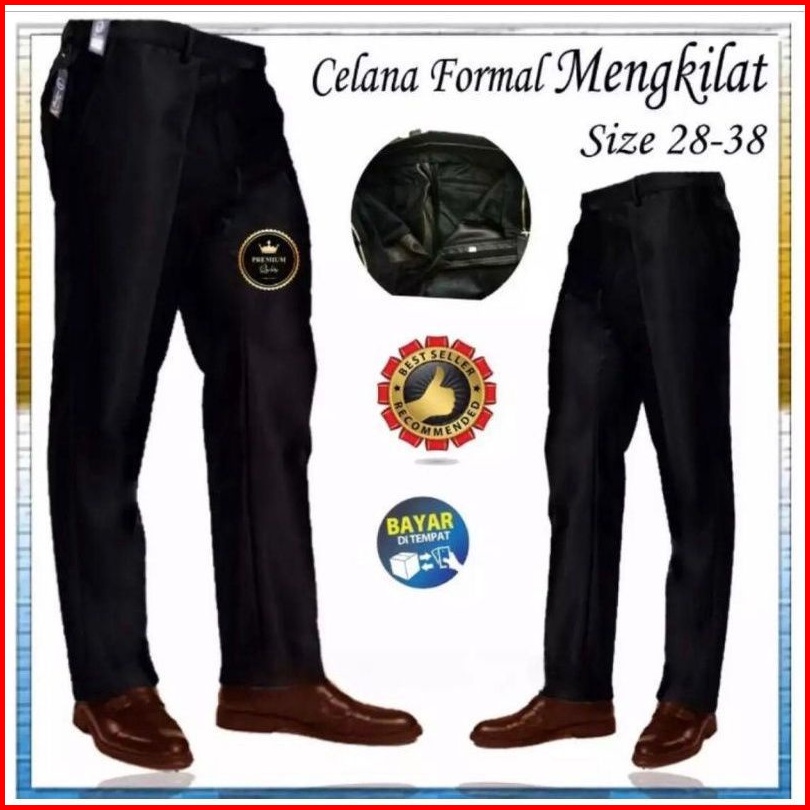 Celana Kerja Formal Pria Slim Fit Bahan Dasar Wol Mengkilap