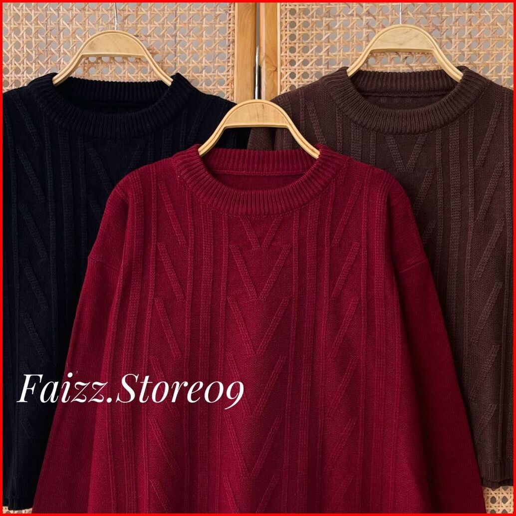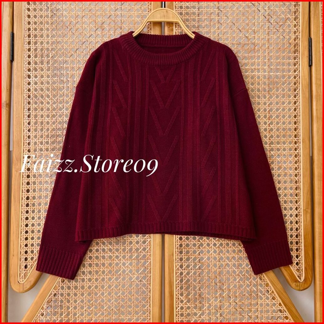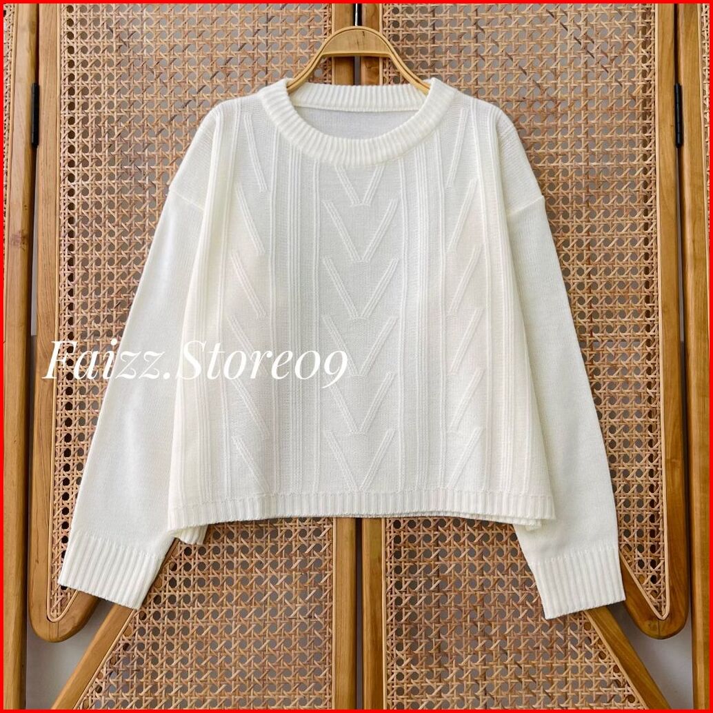 Roma Blouse Knit - Atasan Sweater Rajut Wanita Crop Motif Sido Kerah Bulat Lengan Panjang Korean Style