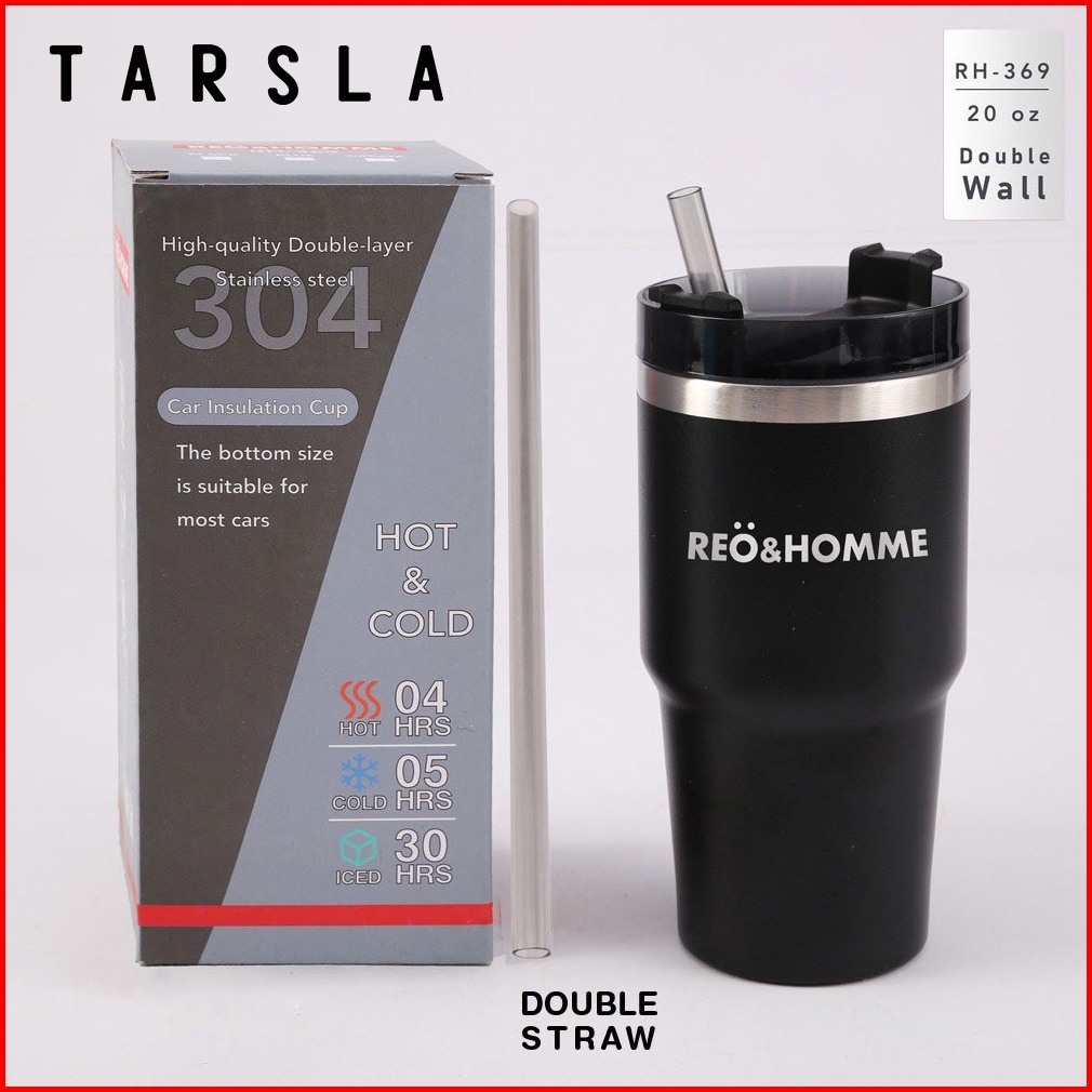 Tarsla Gelas Termos Rh-369 Vacuum Flask Mug 600 Ml Tahan Panas Dingin - With Straw