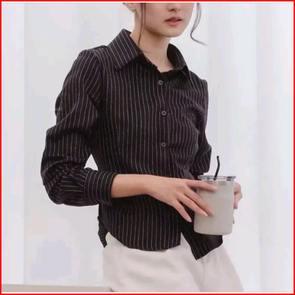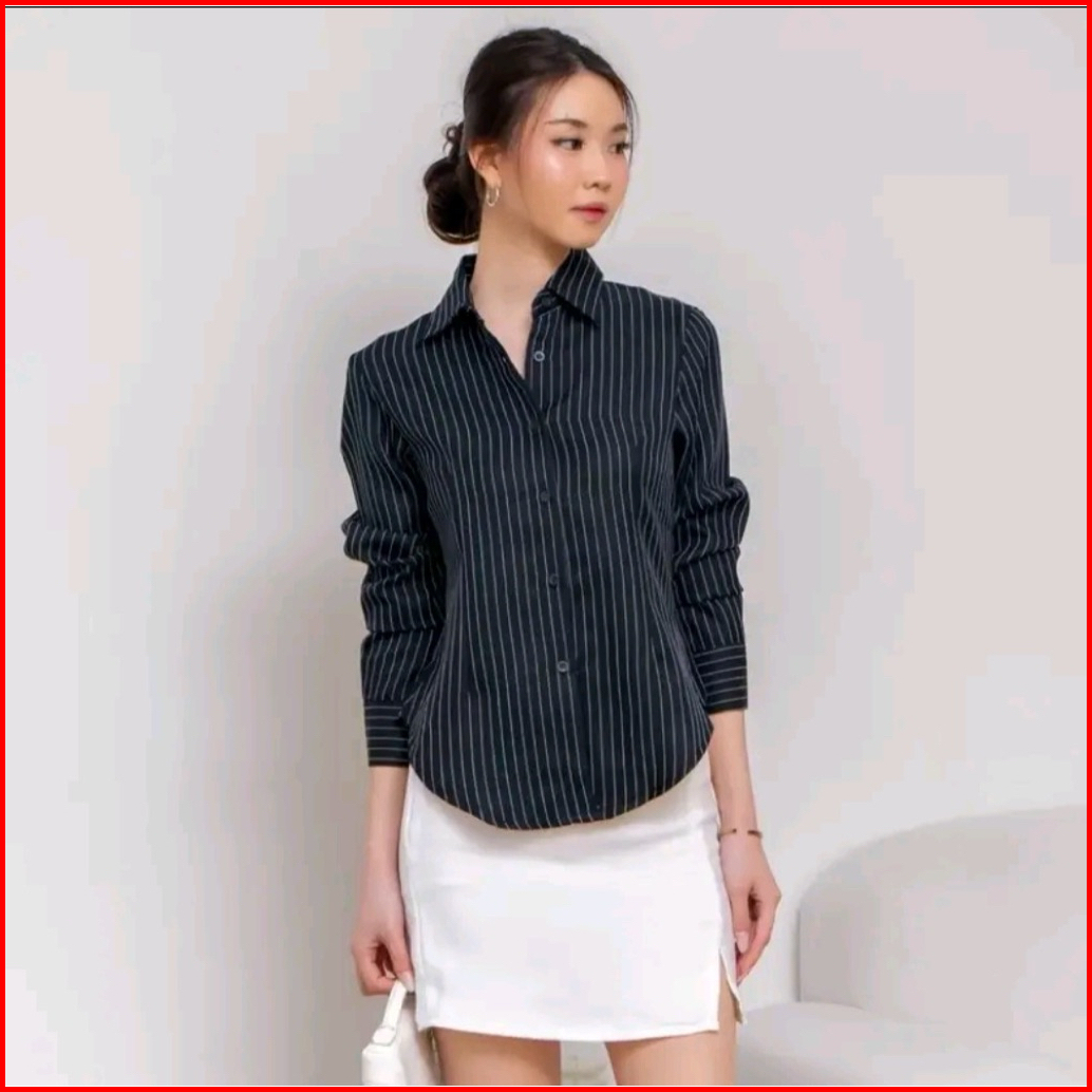 Luna Stripe Kemeja Fitted - Kemeja Wanita Fitted Stripe Salur Basic Formal Casual -kemeja Pres Body Atasan Panjang