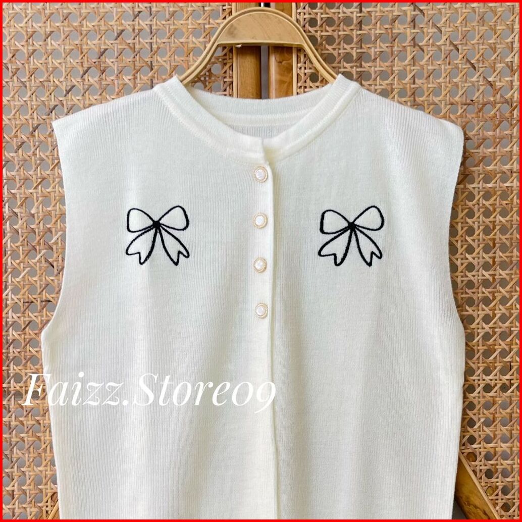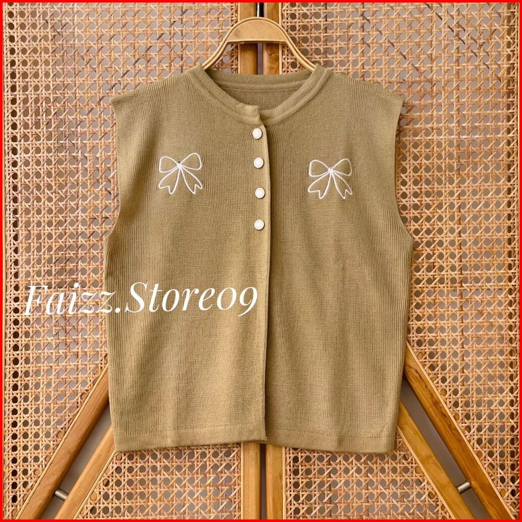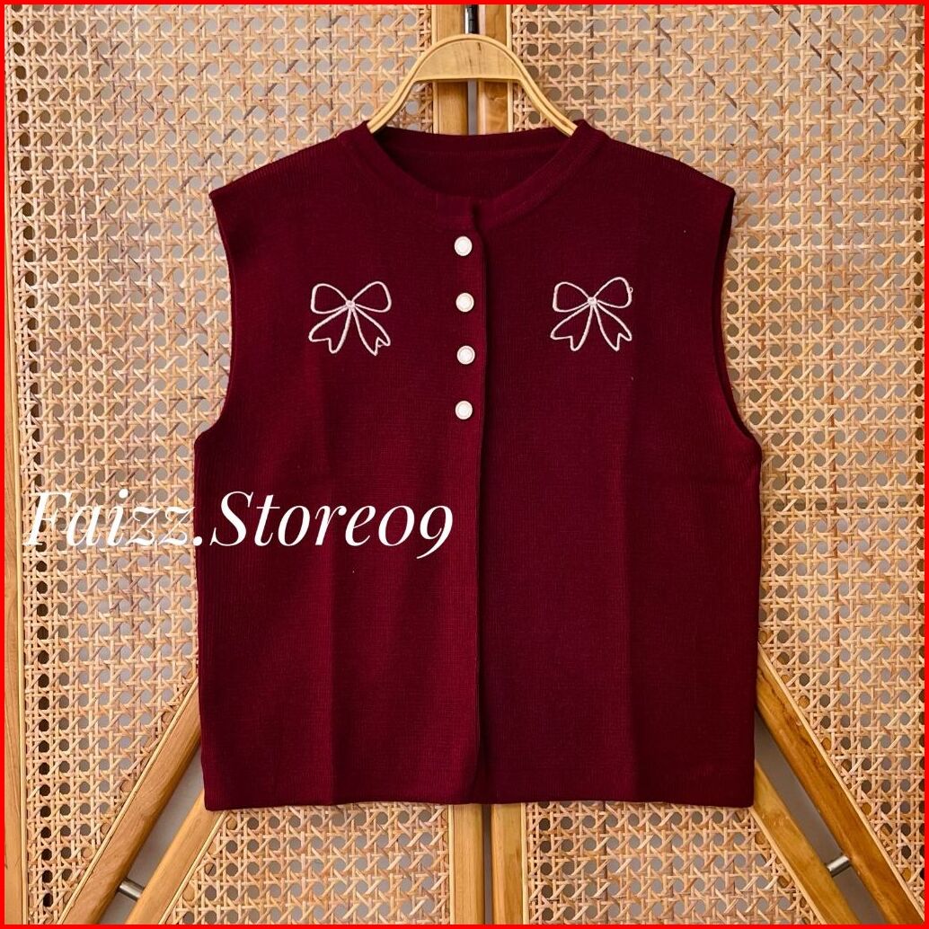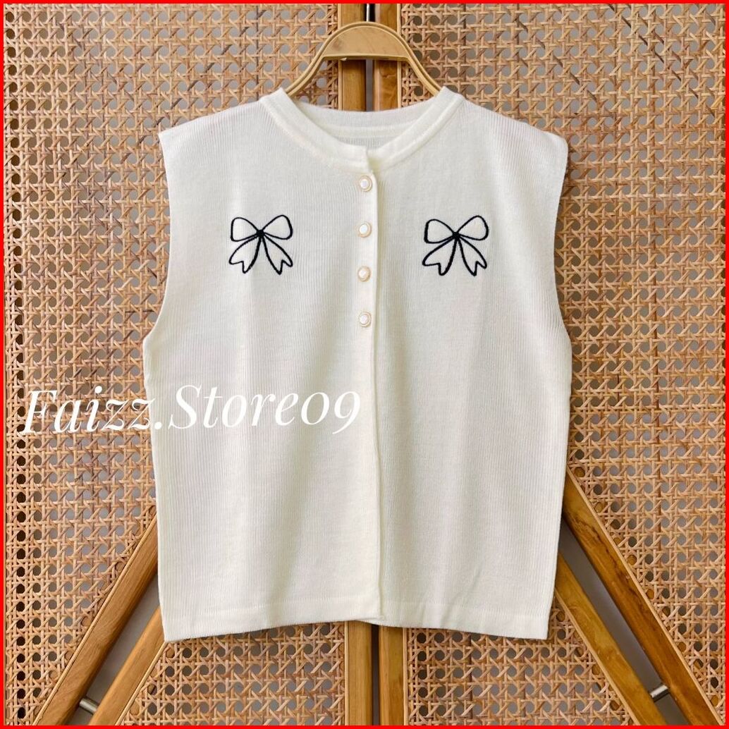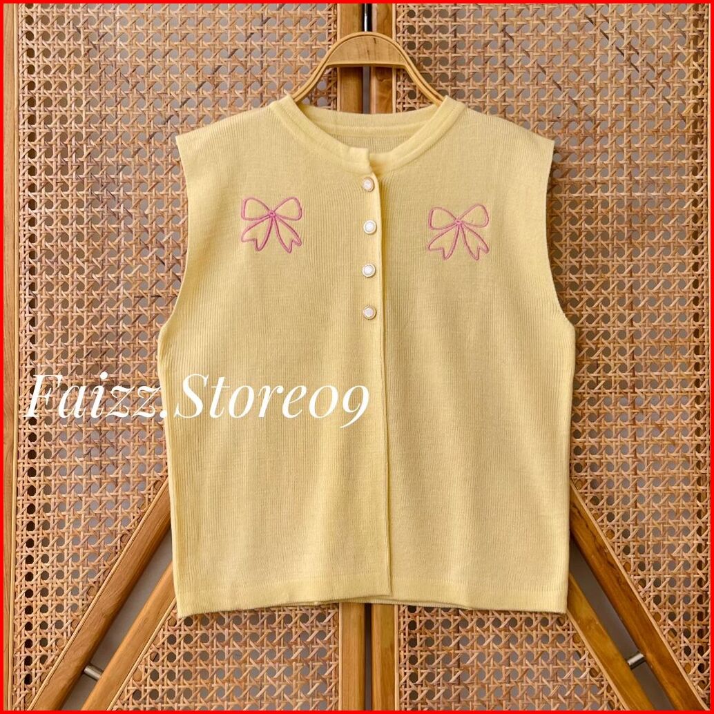 Kimmy Vest Knit - Atasan Rompi Rajut Kancing Wanita Motif Bordir Pita Lucu Desain Moderen Korean Style Premium