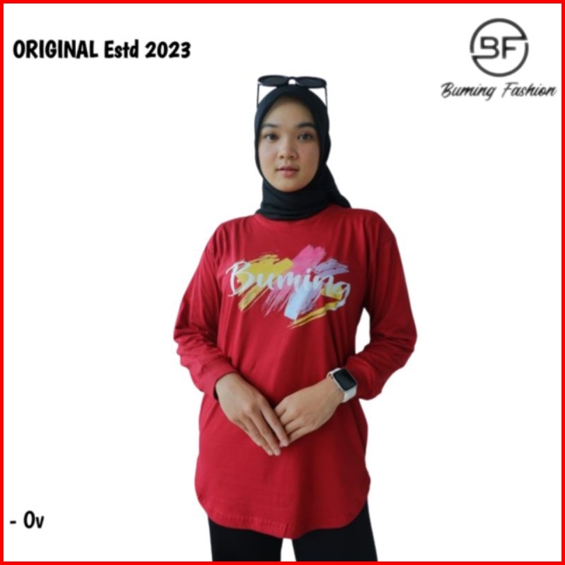 Buming Fashion Atasan Wanita Dewasa Kaos Buming Model Semi Tunik Bawah Oval Bahan Catton Combed24s Warna Marun
