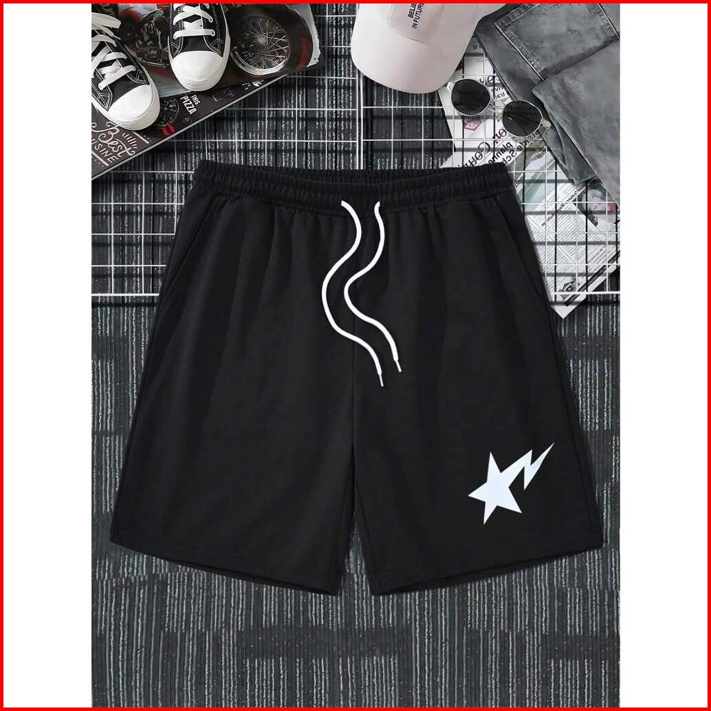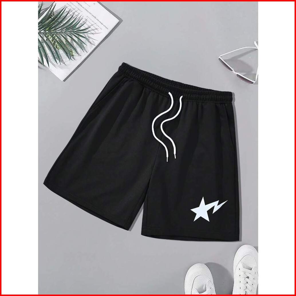 Celana Pendek Boardshort Pria Boxer Pants Motif Star Drawing M-xxl Fleece Katun
