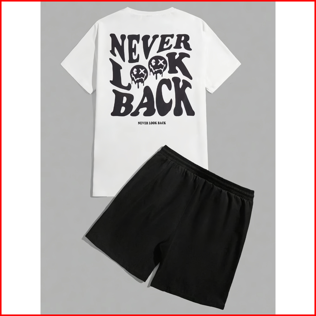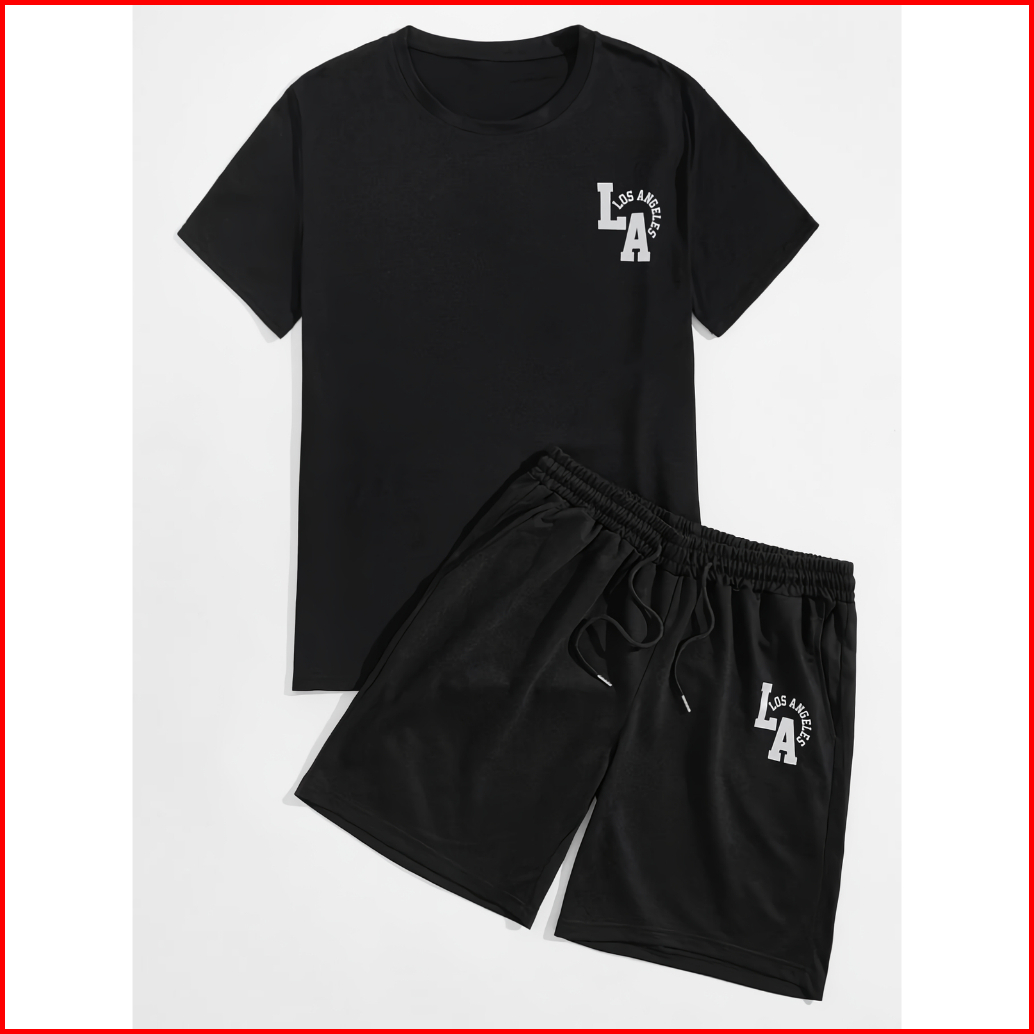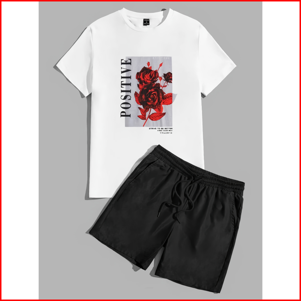 Stelan Baju Dan Celana Pendek Santai Pria Bermotif